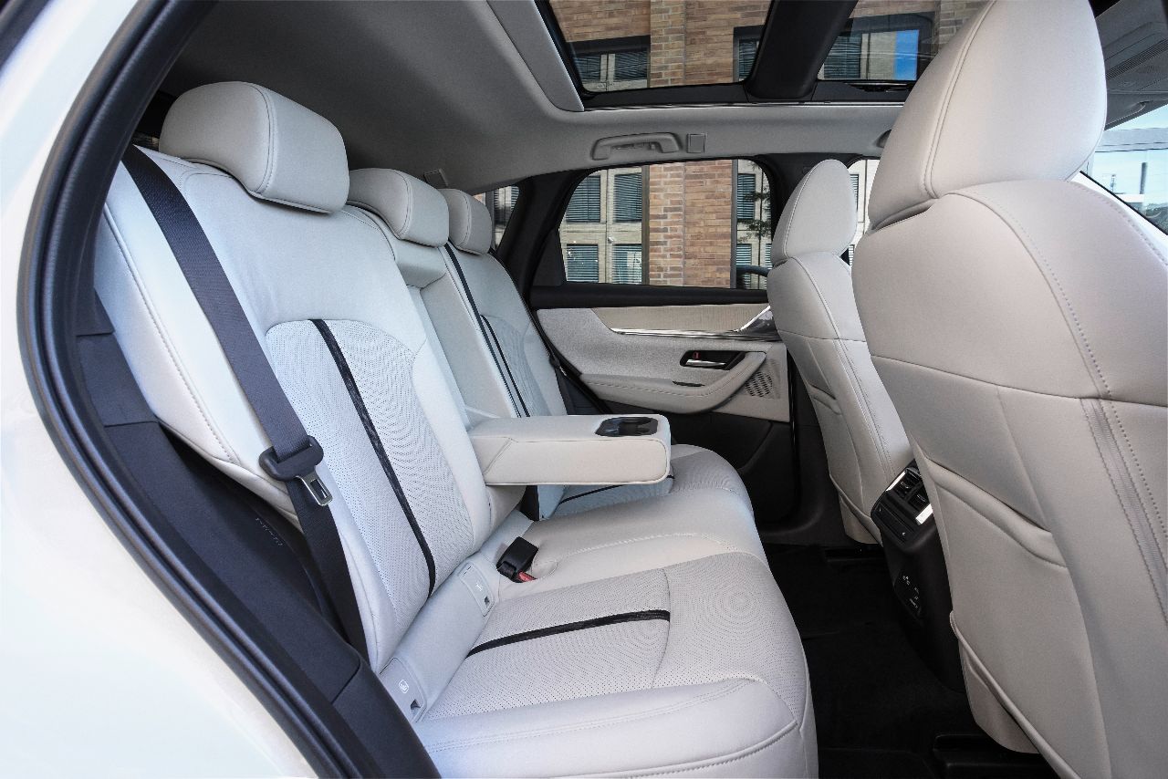 Las plazas traseras del Mazda CX-60 son correctas y un adulto de 1,80 metros podrá viajar bien pero sin grandes holguras. El espacio para la cabeza es correcto y la anchura general también está bien, pero el espacio para las rodillas no es destacable. Alguien de 1,90 metros no irá ancho detrás. Además, la ubicación de las baterías de la versión híbrida hace que el suelo esté ligeramente elevado.
