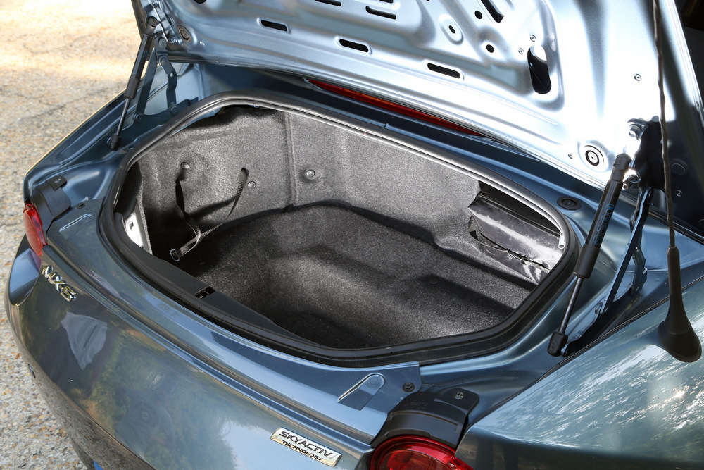 El resultado es el Mazda MX-5 ND que pongo a prueba, un coche sumamente divertido de conducir y que al mismo tiempo, te permite disfrutar de todas las tecnologías y medidas de seguridad que cabría esperar en un automóvil moderno. Está claro que no es un modelo para todos los públicos, pues con solo dos plazas, un habitáculo que no destaca precisamente por ser espacioso y un maletero (imagen) con tan solo 130 litros de capacidad, es de todo menos práctico. Pero claro, todos sabemos que este es el precio que hay que pagar para poder acceder a un MX-5, de la misma forma que nadie espera que el Miata sea tan veloz como un BMW M4 Coupé (prueba).