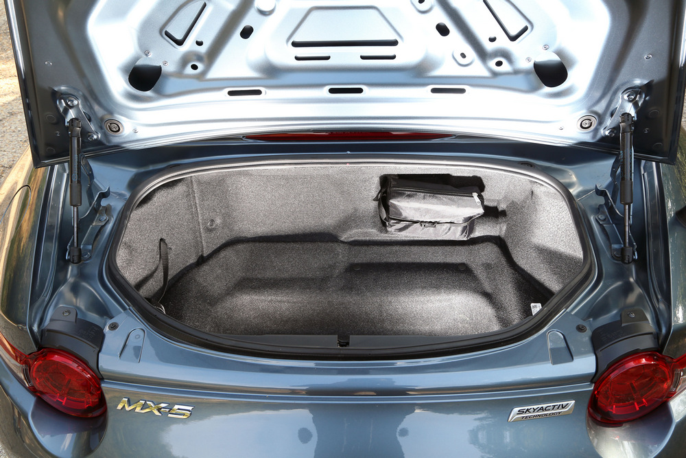 El resultado es el Mazda MX-5 ND que pongo a prueba, un coche sumamente divertido de conducir y que al mismo tiempo, te permite disfrutar de todas las tecnologías y medidas de seguridad que cabría esperar en un automóvil moderno. Está claro que no es un modelo para todos los públicos, pues con solo dos plazas, un habitáculo que no destaca precisamente por ser espacioso y un maletero (imagen) con tan solo 130 litros de capacidad, es de todo menos práctico. Pero claro, todos sabemos que este es el precio que hay que pagar para poder acceder a un MX-5, de la misma forma que nadie espera que el Miata sea tan veloz como un BMW M4 Coupé (prueba).