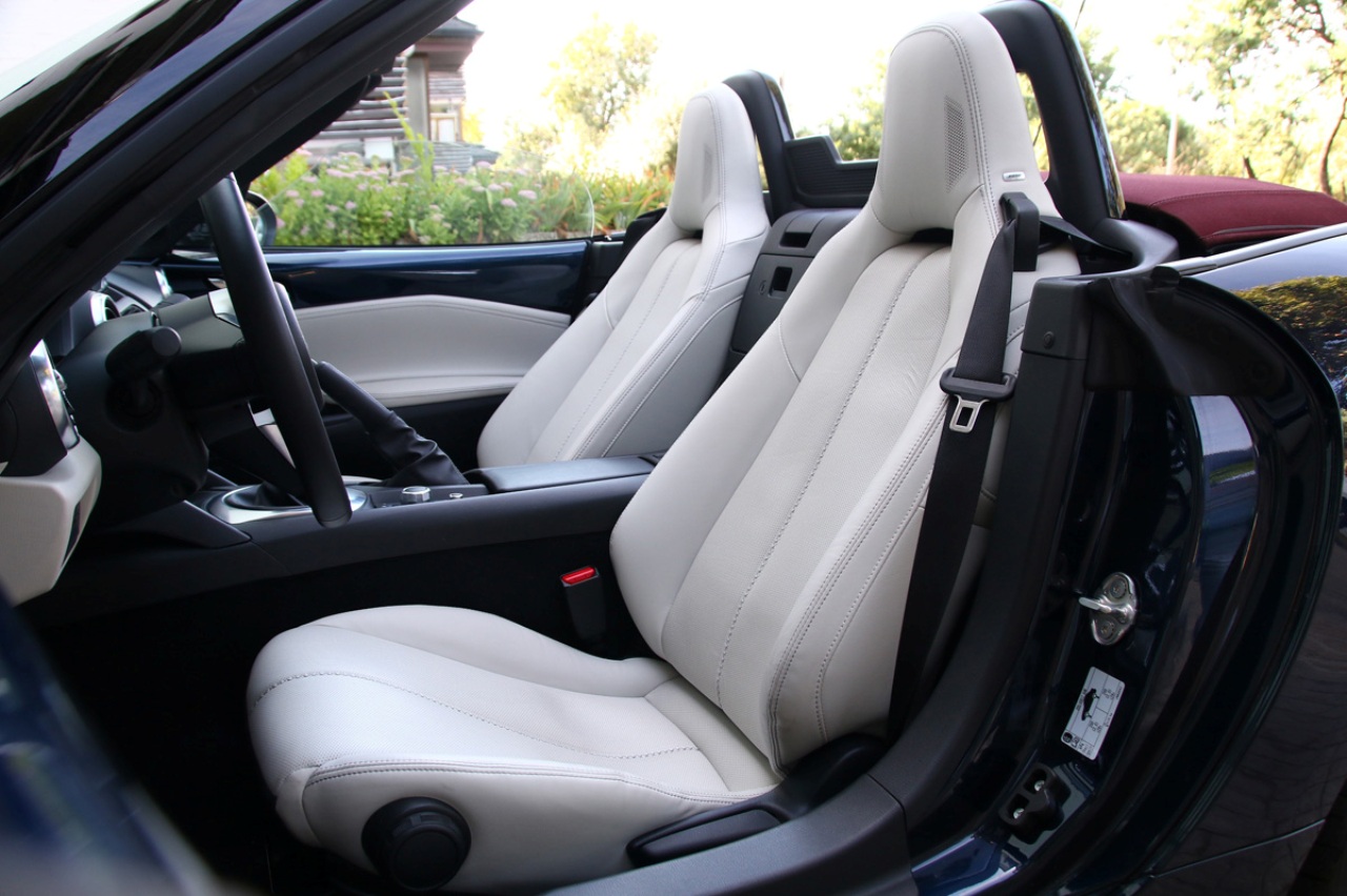 Esta nueva versión especial del Miata se caracteriza por su carrocería en color Deep Crystal Blue Mica, el techo de lona burdeos, y la tapicería interior y los guarnecidos en piel nappa blanca. El toque distintivo se lo añade las llantas BBS de 17 pulgadas terminadas en negro brillante.