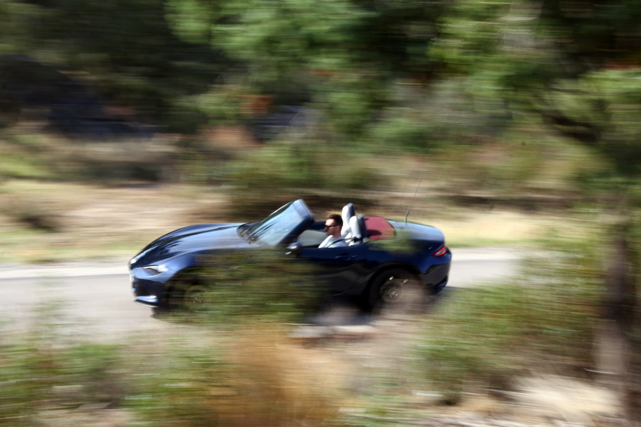 Piso embrague, presiono el botón de arranque y me dejo llevar por la sinfonía que emana de su nuevo sistema de escape. Cobra vida con un acelerón, aunque cuando el motor gana temperatura reconozco que es más silencioso a ralentí de lo que me gustaría en principio. Salgo a la carretera a familiarizarme de nuevo con el Miata y a comprobar cómo ha conseguido Mazda mejorar el excelente apartado mecánico y dinámico de pequeño samurái.