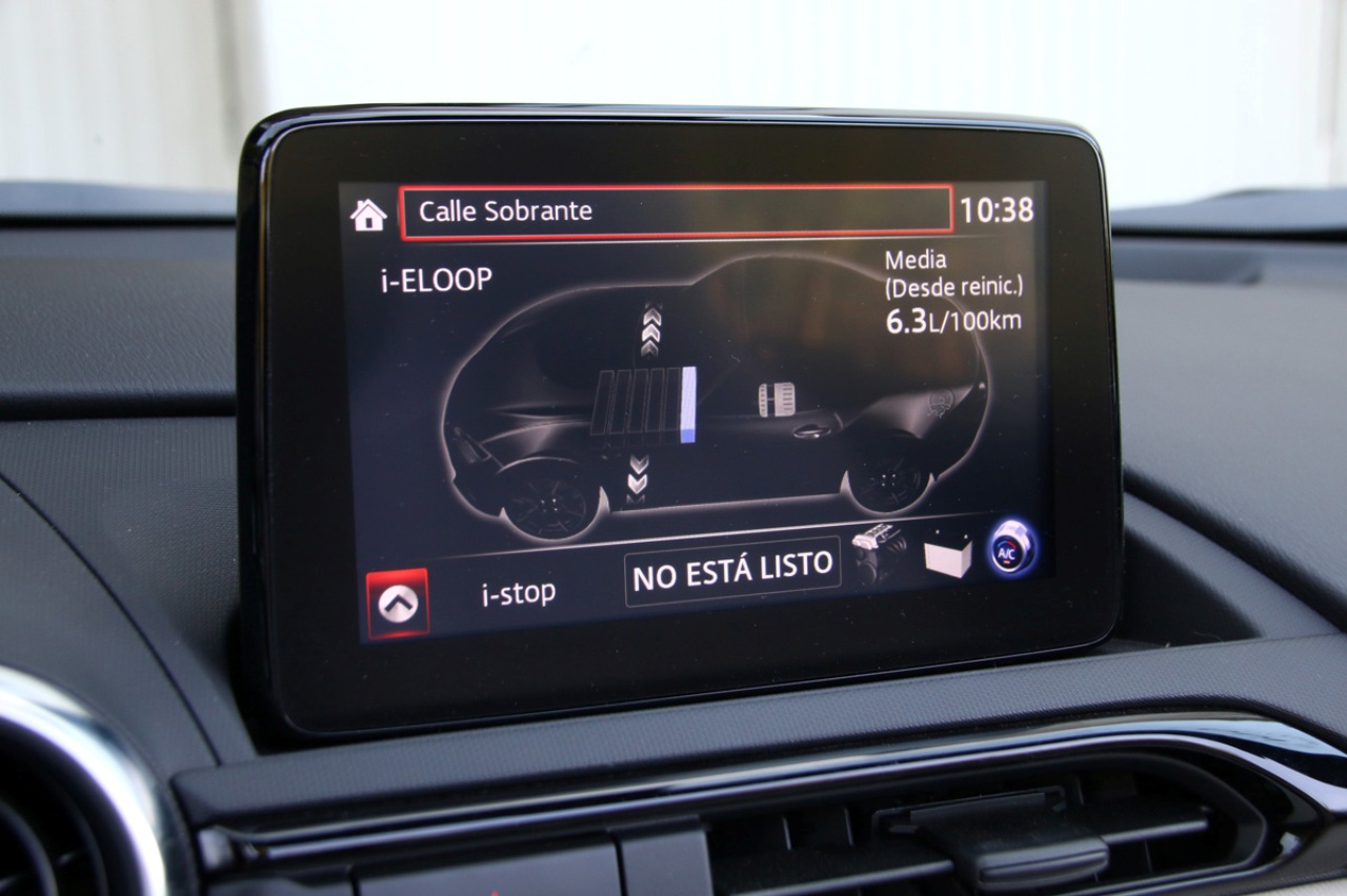 Ajusto, ahora sí, la posición del asiento, que no es regulable en altura, y la inclinación del respaldo está algo limitada por el espacio. Por suerte, Mazda introdujo una columna de dirección ajustable en altura y también en profundidad con el restyling. Esto permite encontrar el punto exacto para ir cómodo al volante, con una postura deportiva, aunque no excesivamente radical. Los pedales, por su parte, están bastante juntos y alineados con el volante, lo que facilita hacer el punta-tacón.