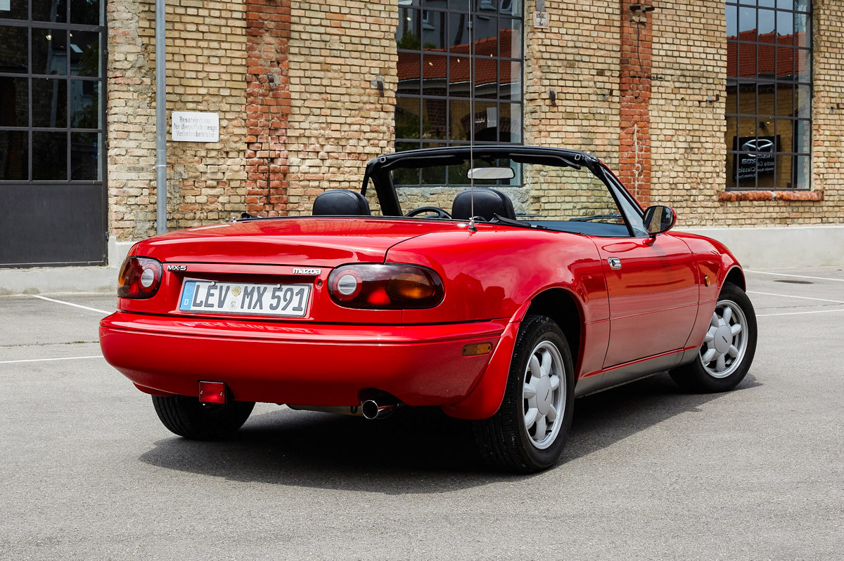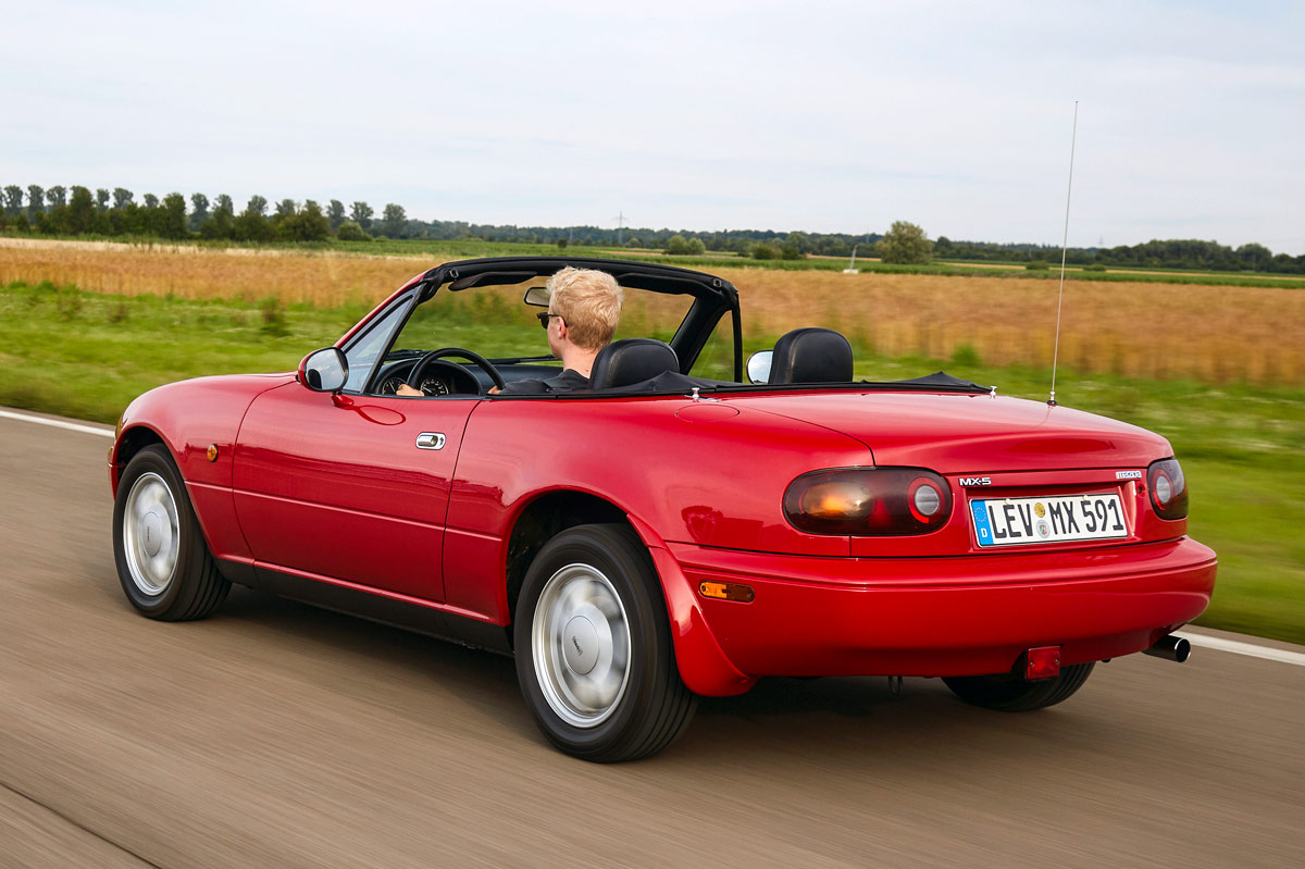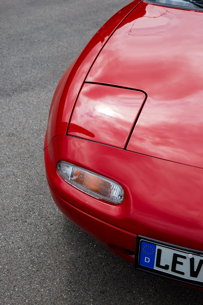 El coche, en vivo, se aprecia muy pequeño y bajo, ya entonces lo parecía -con solo 1,2 metros de alto-, y si ahora llama la atención, en su lanzamiento hacía girar las cabezas: biplaza, abierto, de una marca casi desconocida... el MX-5 colaboró decisivamente a mejorar la imagen de Mazda, como el Impreza STi a la de Subaru, o el M3 a la de BMW.