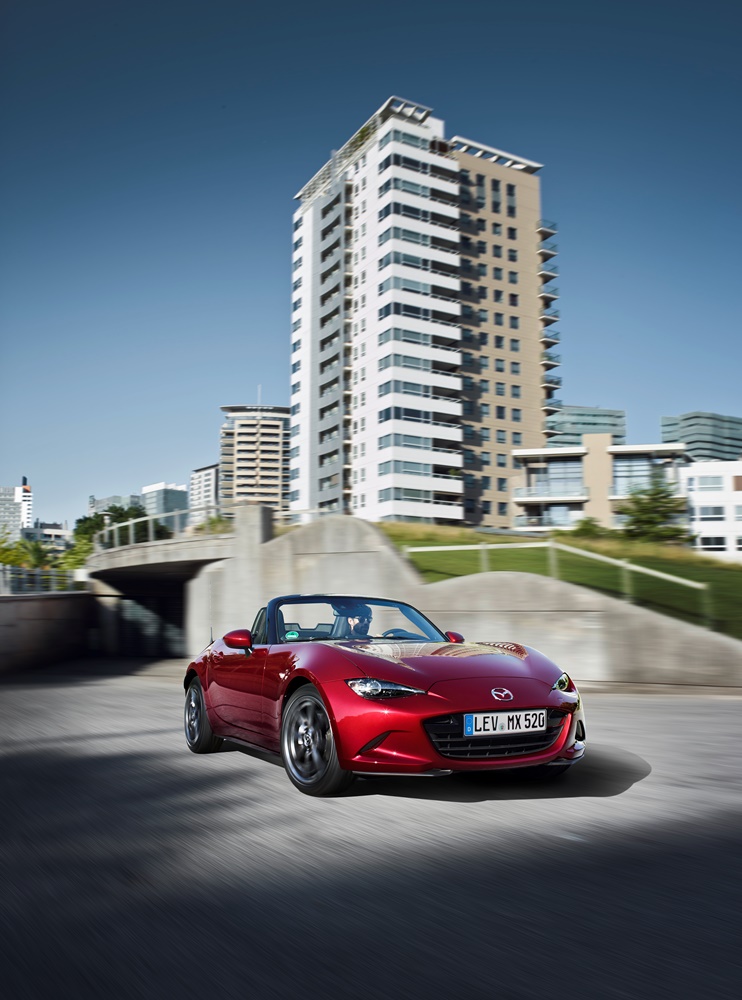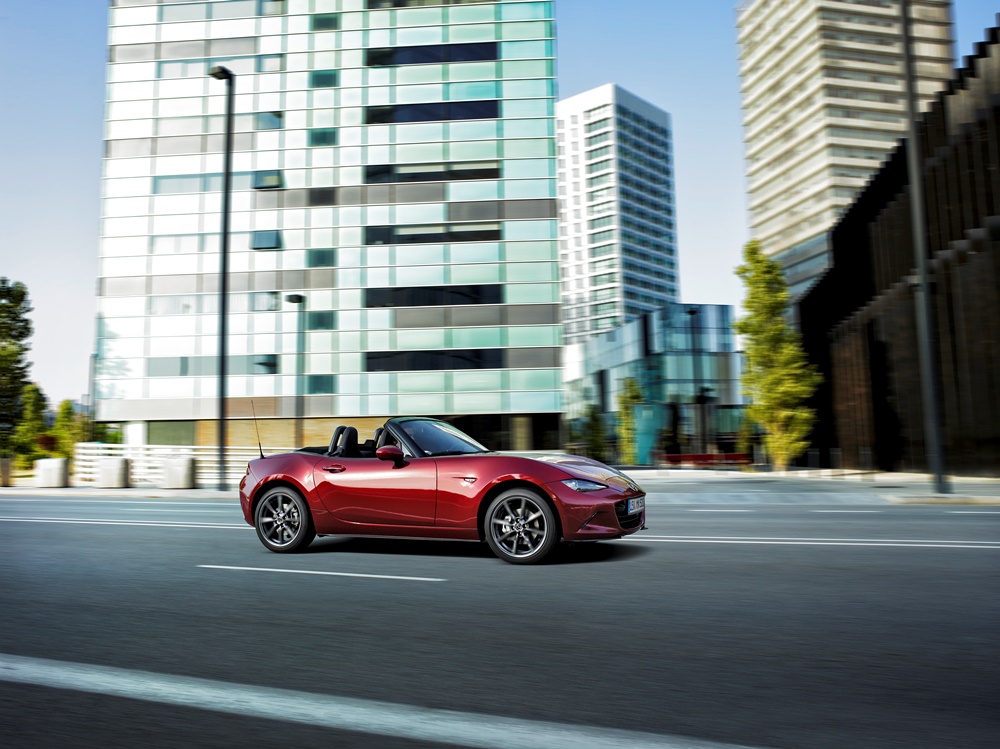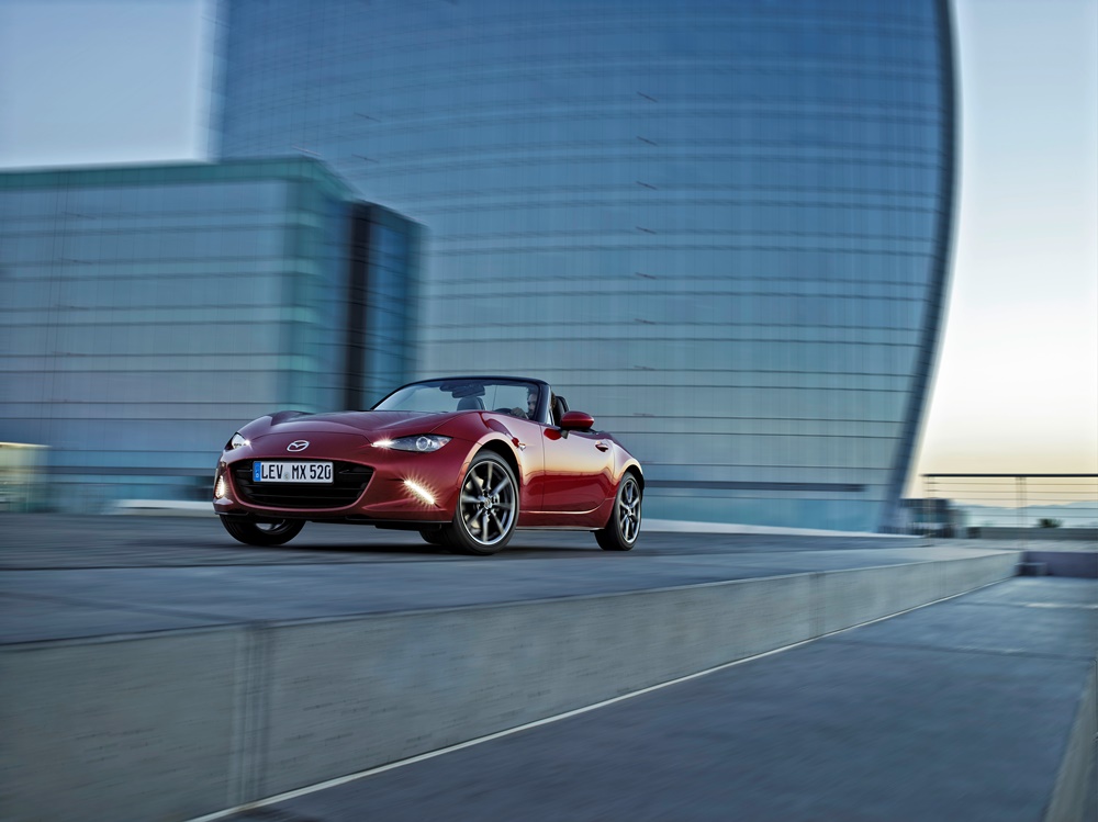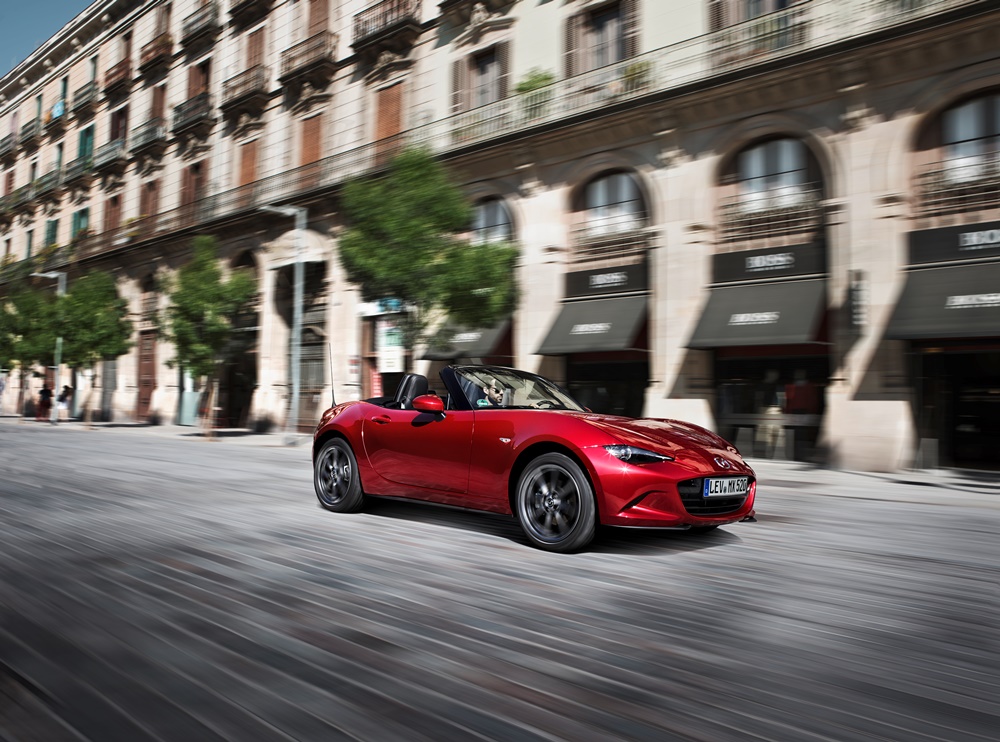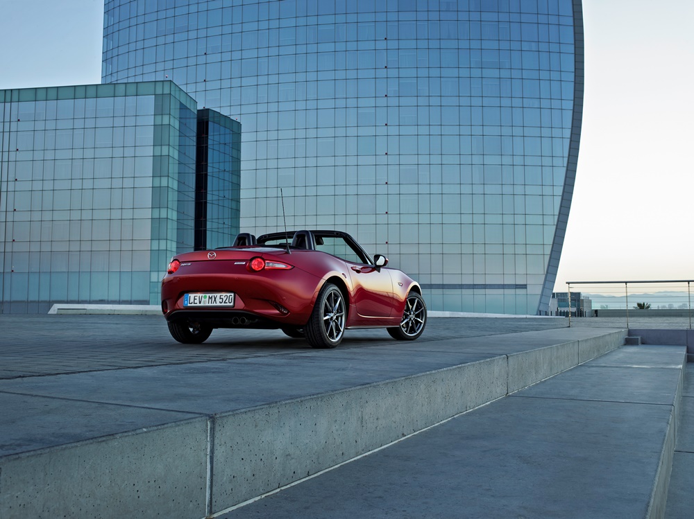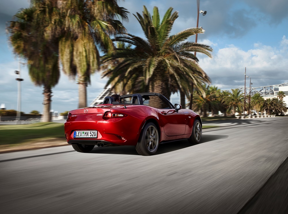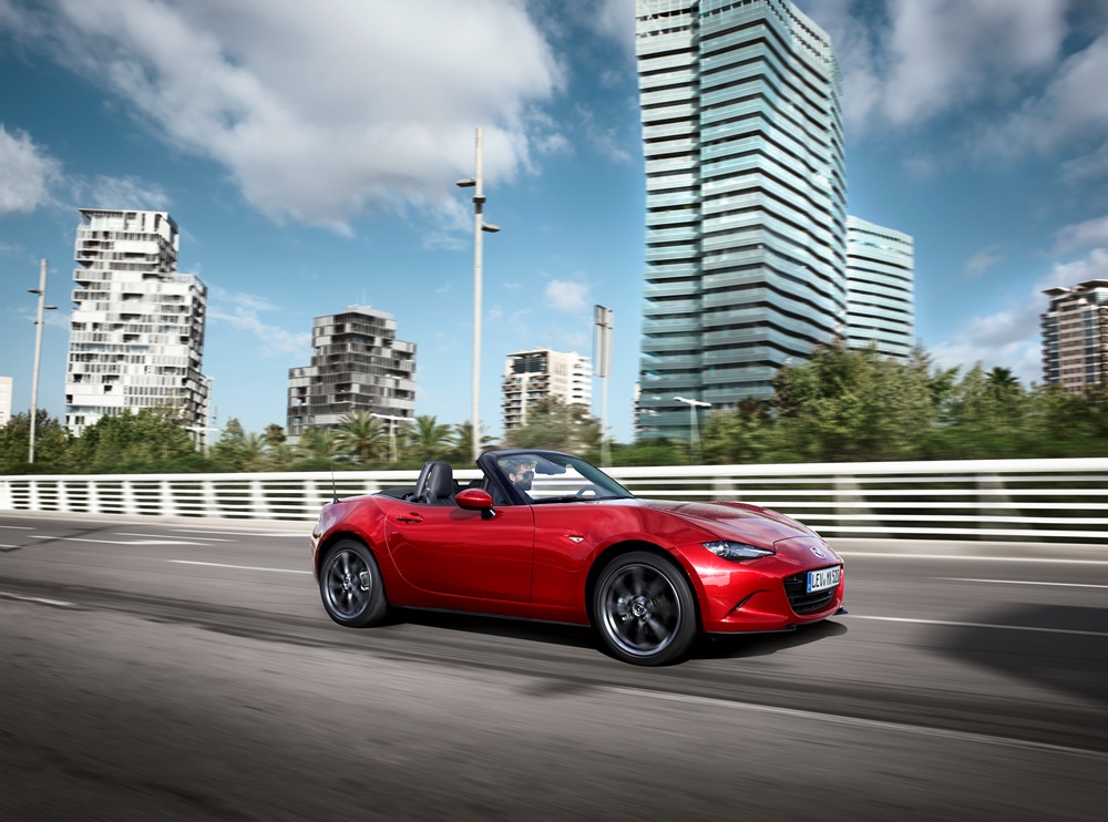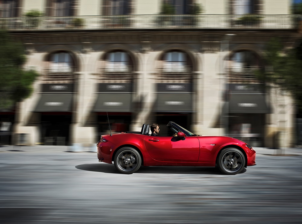 Esta combinación de factores, unidos a la transmisión manual, la propulsión trasera y el diferencial autoblocante (solo disponible en el motor de 2,0 litros) hacen del MX-5 una precisa herramienta de conducción. Su paso por curva es muy rápido, la suspensión se mantiene firme para evitar balanceos y su exquisito reparto de pesos hace que la trasera no se salga de la línea. Estable y rápido en los tramos de curvas, donde las recuperaciones en marchas largas a partir de 2.500 rpm se llevan a cabo de forma efectiva. El sistema de frenos sin ‘florituras’ presenta discos ventilados delanteros y macizos traseros de 280 mm en el 2.0, mientras que en el 1,5 litros son de 258 y 255 mm respectivamente.