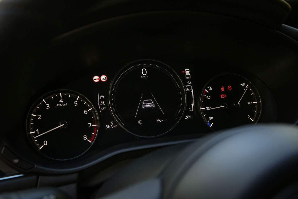 A pesar de tratarse de un corazón atmosférico (oh, sí), el nuevo Mazda3 se mueve realmente bien a lo largo de toda la esfera de su tacómetro. Deja de mirarme así: está claro que si buscas las prestaciones de algo como el Honda Civic Type R de esta prueba te estás equivocando de coche, pero para un uso normal los 122 CV que entrega su motor de dos litros son más que suficientes. Siendo además ofrecidos con una suavidad y progresividad sorprendentes.