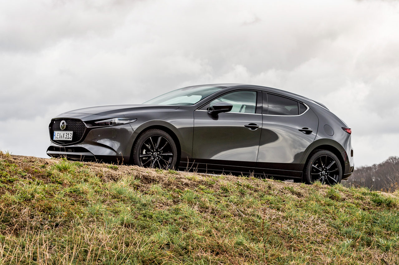 tres cuartos delantero del Mazda3 e-Skyactiv X 186 CV