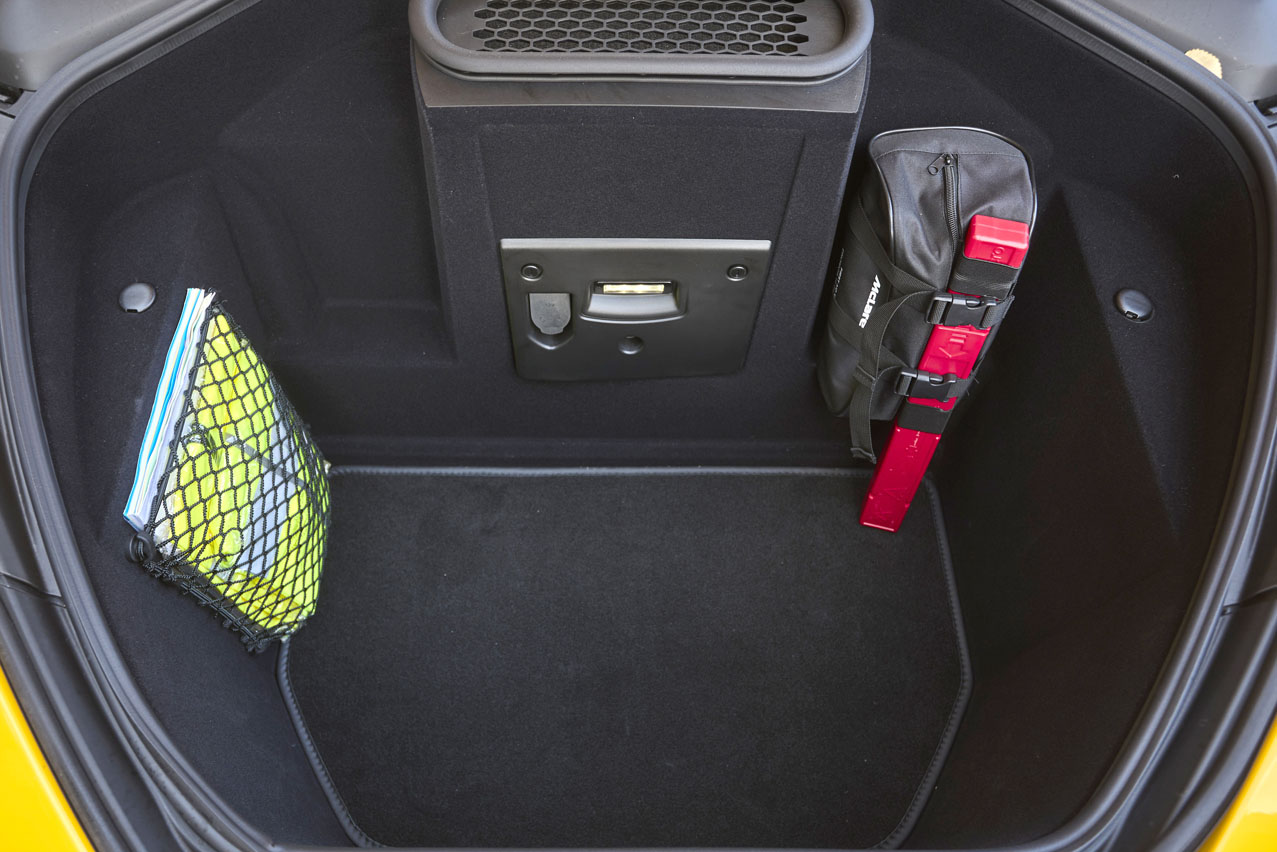 Por cierto, esta tiene acertados detalles que la diferencian, como que la figura para dirigir la ventilación sea un piloto. Y hablando de piloto, el techo tiene una forma cóncava, que le da más espacio, por si quieres ponerte el casco y dar rienda suelta a tus ganas de pasártelo bien en circuito.