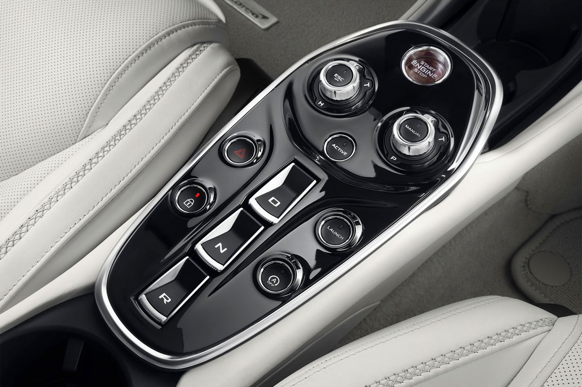 Uno quiere ser buenecito, pero es que todo en el McLaren GT pide ‘guerra’: y en el túnel de transmisión, junto a los botones de D (directa), R (retroceso/marcha atrás) y P (freno de mano/parking), hay más botones y ruedas con sabor a monoplaza para elegir modo automático o 'Manual' (cambio secuencial de 7 velocidades mediante levas) y actuar de forma independiente sobre chasis y mapas de motor, cuando pulsas 'Active', y jugar así con tres modos de conducción (de más confortable a más salvaje) en cada ruleta: Confort, Sport y Track.