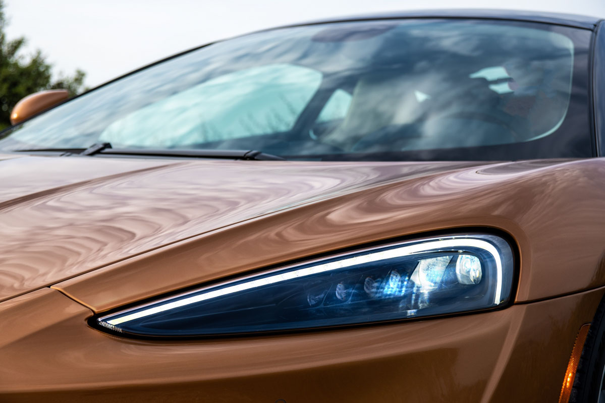 Por fuera, hay que admitir que las formas del McLaren GT son perfectamente reconocibles desde cualquier punto: los faros delanteros son bastante más refinados que los de sus hermanos, como el McLaren 600LT (prueba) o el radical McLaren Senna (prueba); las tomas de aire laterales, menos agresivas; las llantas, de brazos muy numerosos y estilizados; y la trasera 'esconde' los pilotos de LED, en lo que a mí me parece un toque de finales de los 80 y principios de los 90, con esas rejillas que ocultaban la iluminación posterior y conferían a los Ferrari Testarossa y al 348 o al propio Jaguar XJ220 una gran personalidad.