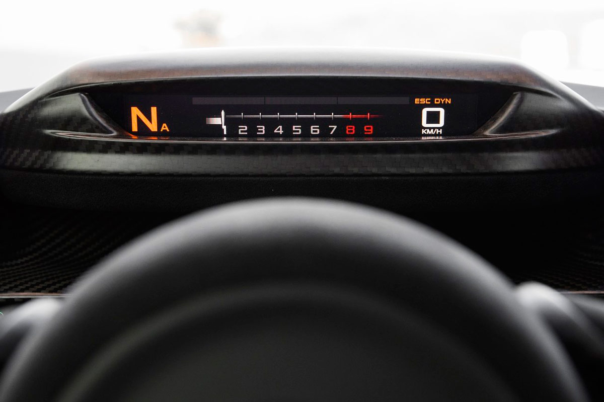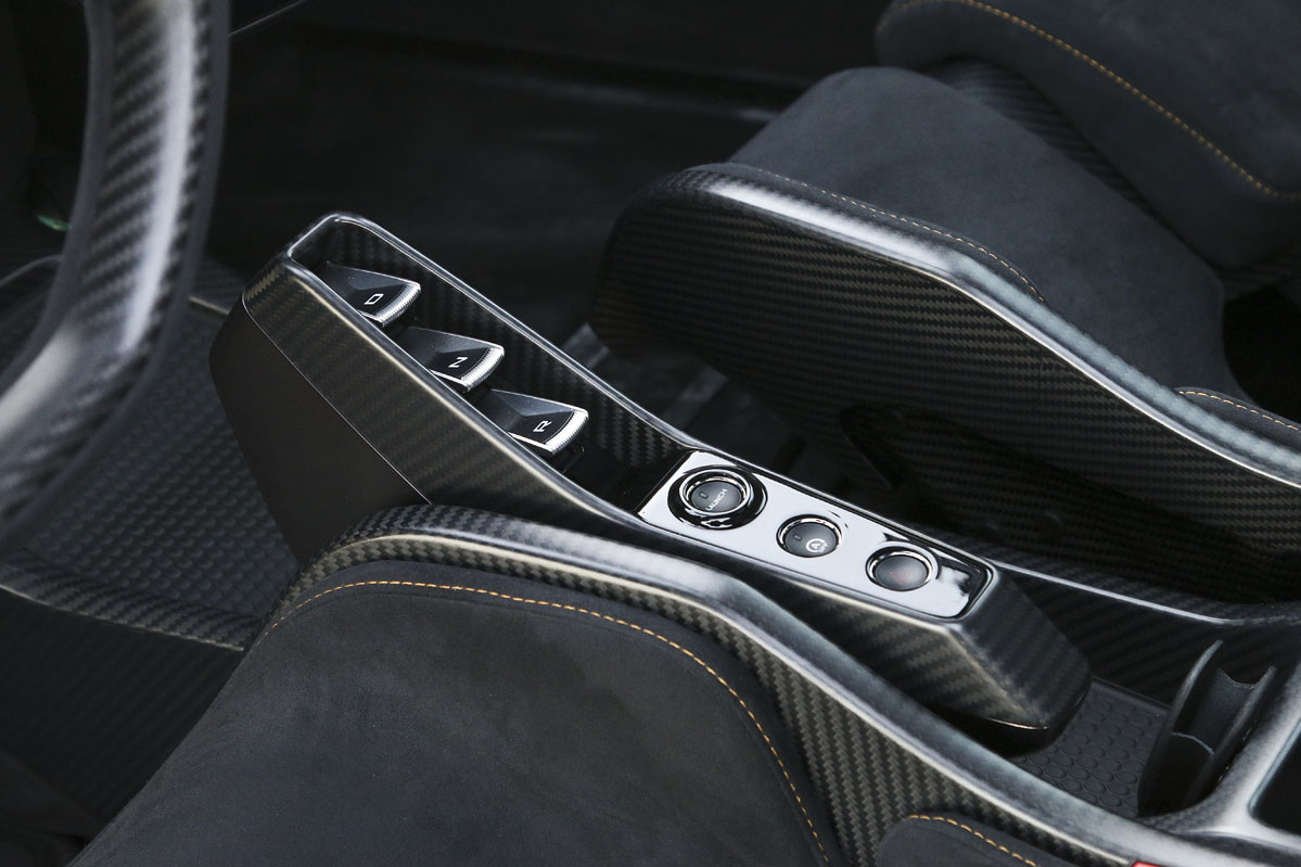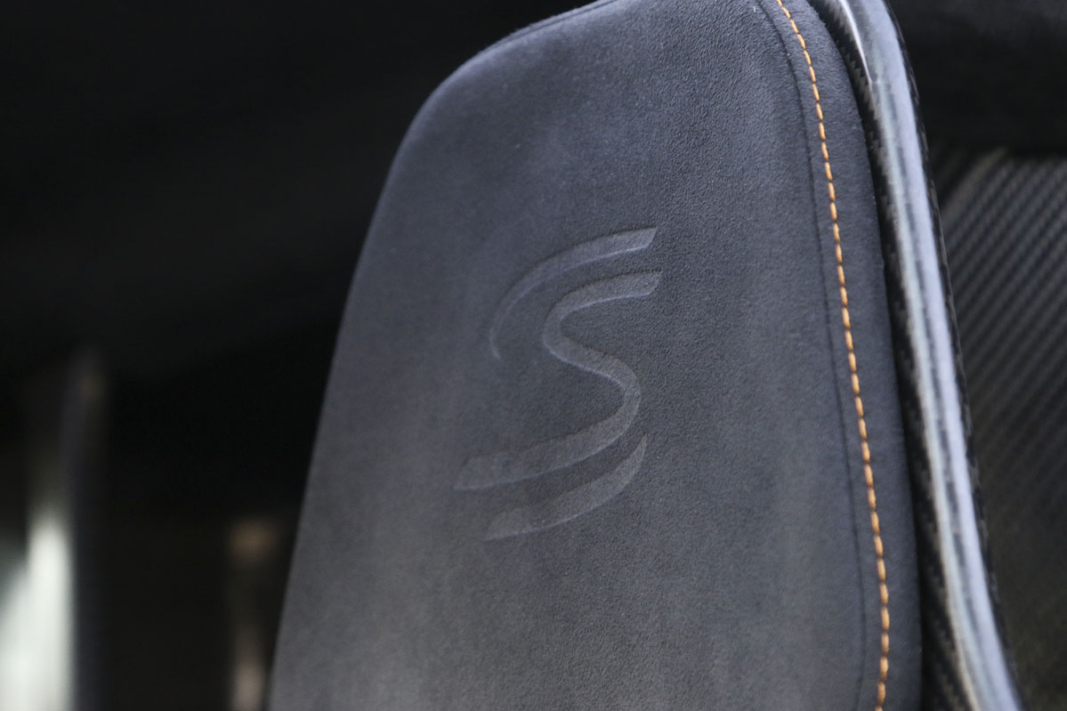 Es un coche duro, donde el confort pasa a un segundo plano. Algo que me sorprende son los asientos: parecen durísimos, ya que es simplemente una estructura de carbono con pequeñas inserciones de goma y tapicería de Alcantara. Pero, en realidad, no lo son tanto: recogen al cuerpo como un guante y realmente te sientes bien desde el primer segundo.