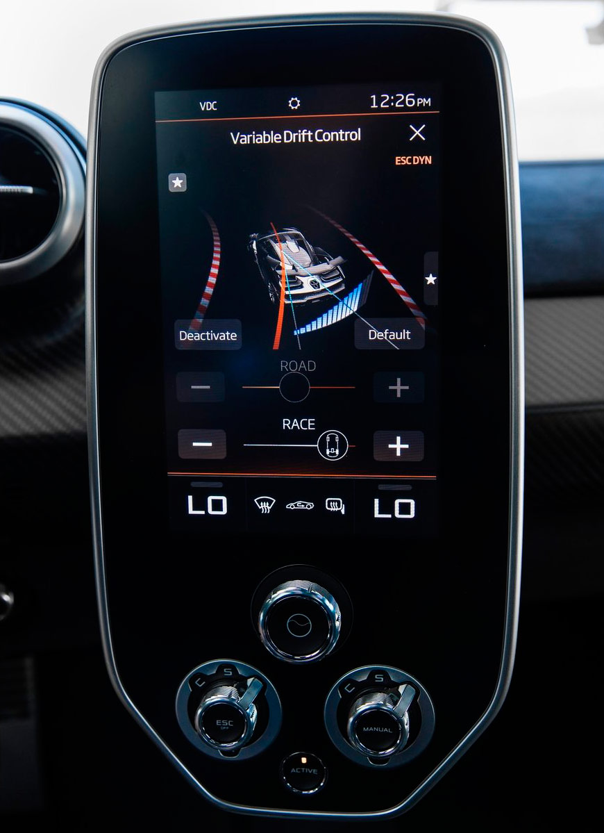 Pero en este caso bajo el capó, situado en posición central trasera, justo tras los asientos, se encuentra el salvaje motor M840TR, un propulsor V8 biturbo, de cuatro litros de cilindrada, capaz de generar 800 CV y 800 Nm de par. Su comportamiento es salvaje: alcanza su máxima potencia a 7.250 vueltas y el máximo par solo a partir de las 5.500 revoluciones.