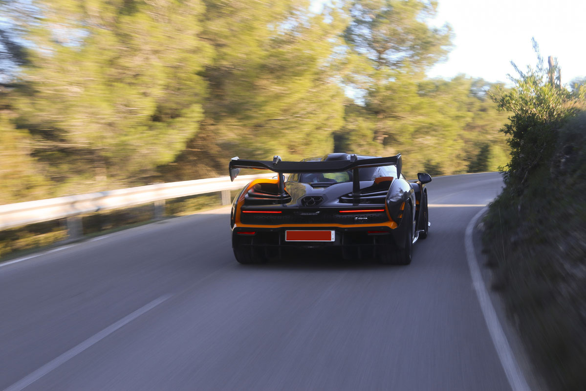 Sobre el papel, el McLaren Senna es capaz de acelerar de 0 a 100 km/h en 2,8 segundos, pero, personalmente, hay otra cifra que me parece más impresionante y a la vez más evidente de su carácter: acelera de 0 a 200 km/h en 6,8 segundos. Y sí, puedo decir que lo que más me impresionó en este coche es su capacidad increíble para ganar velocidad cuando ya ruedas a un ritmo veloz.