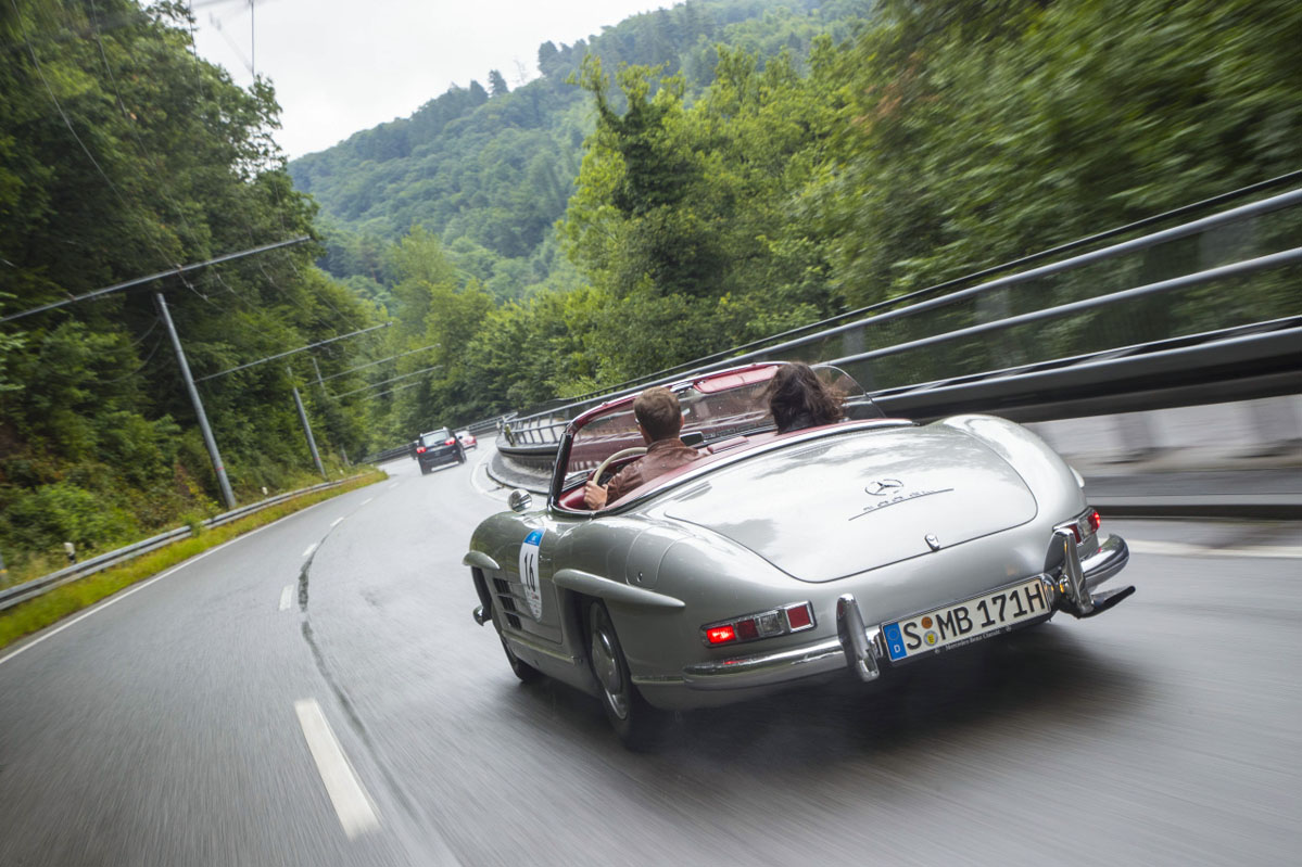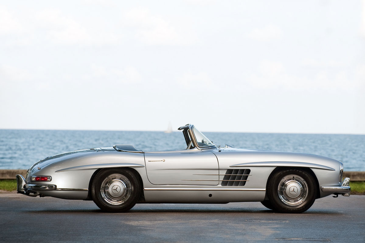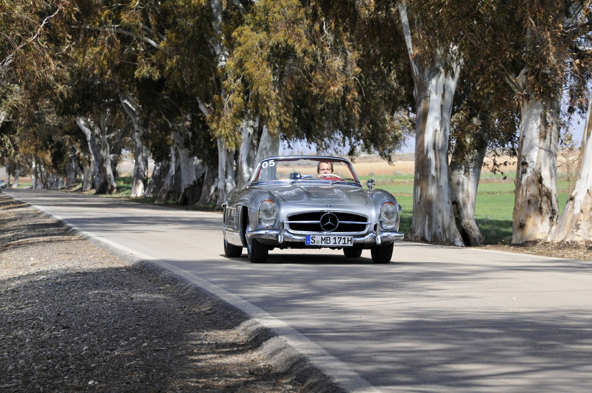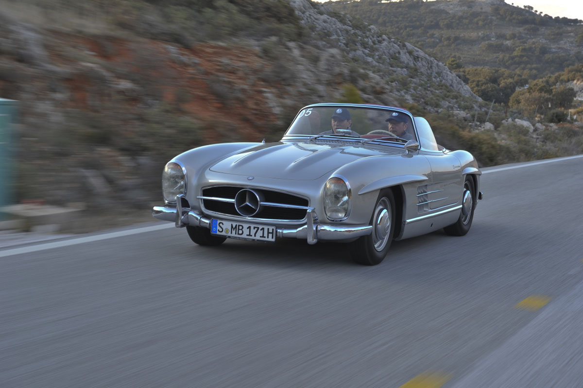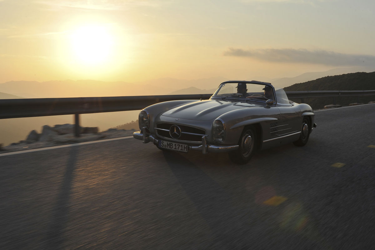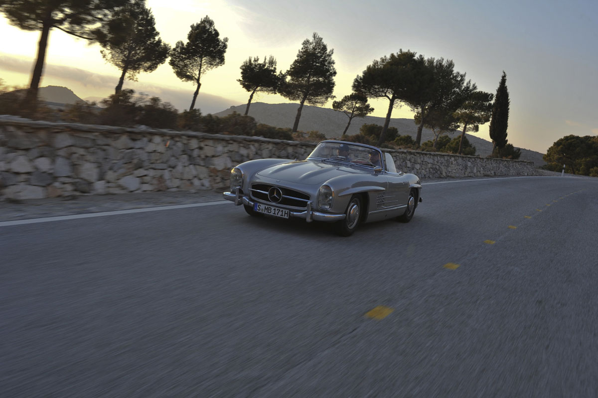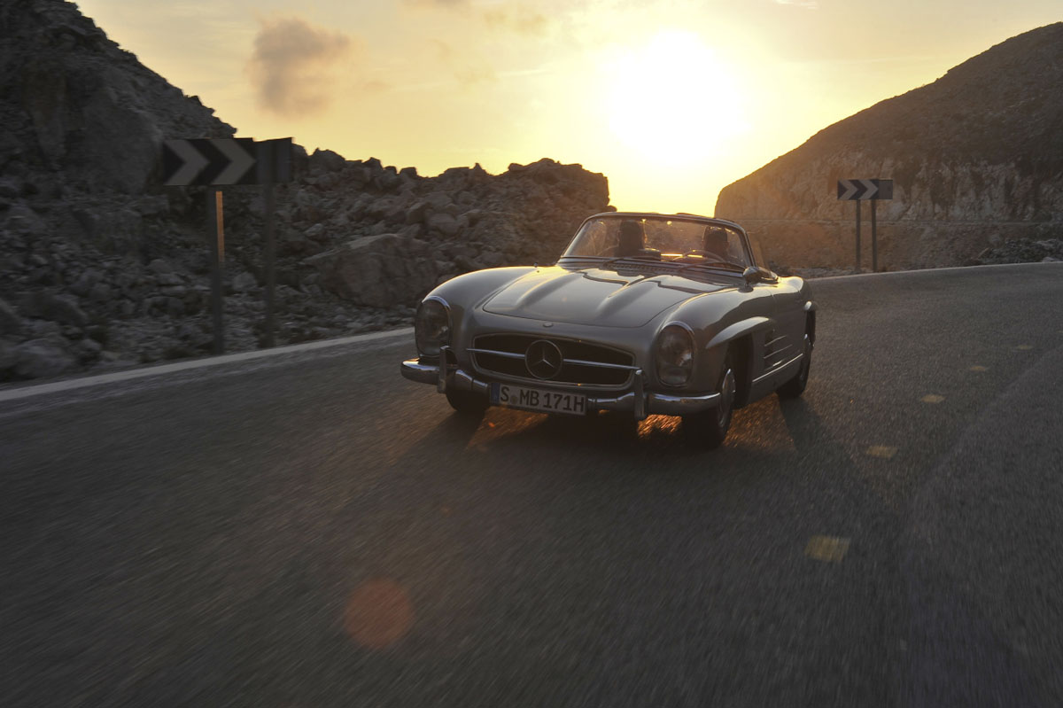 El protagonista de esta prueba, el Mercedes 300 SL Roadster, es uno de los coches más míticos que se han fabricado, ensombrecido por la versión coupé que se convirtió en leyenda por sus puertas en forma de ala de gaviota, pero lo cierto es que el descapotable es mejor coche en todos los aspectos y en los últimos tiempos se está haciendo justicia y sus cotizaciones ya están muy parejas.