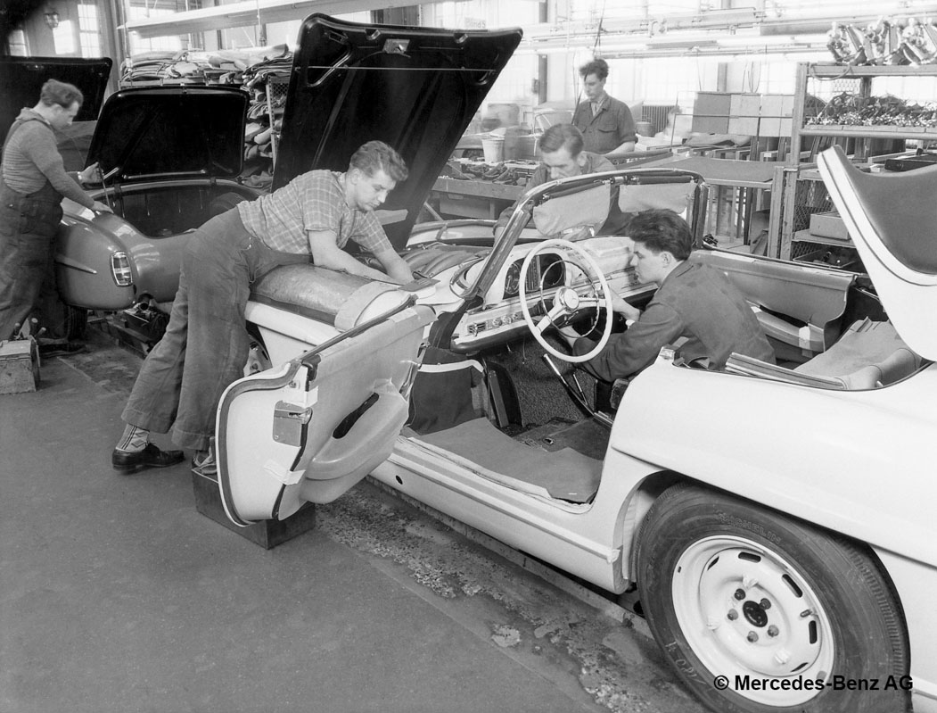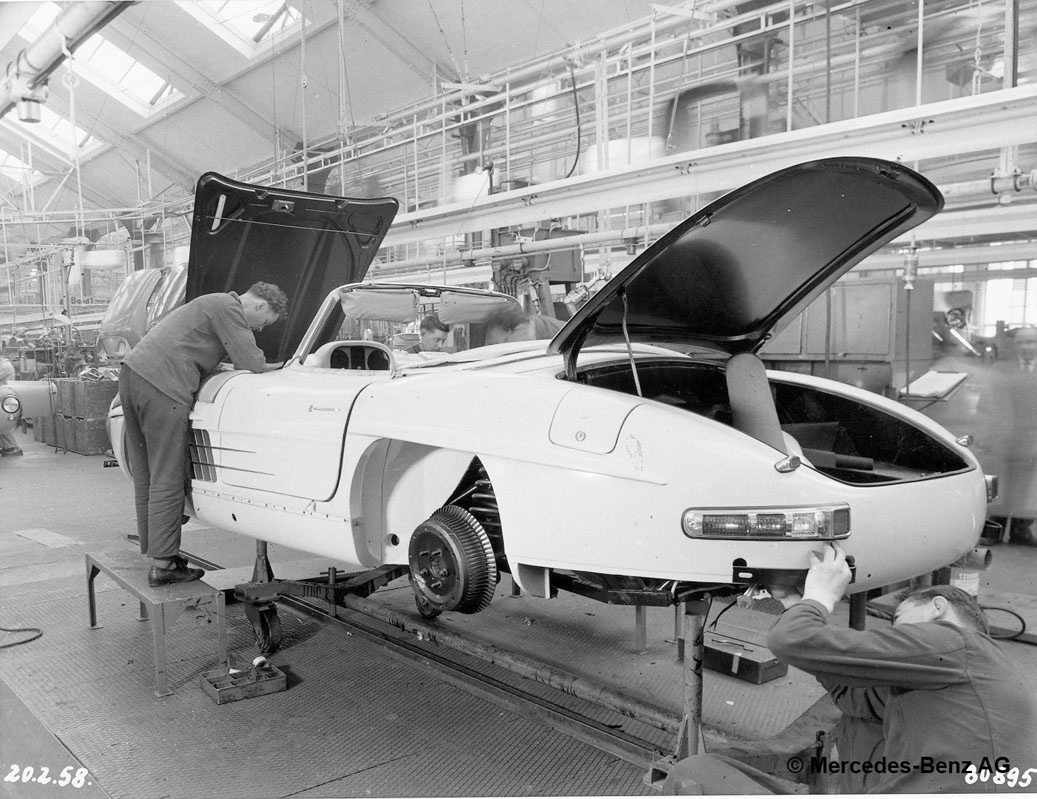 Tres años después del lanzamiento del 300 SL se presentó el Roadster en el Salón de Ginebra de 1957. El chasis tubular cambió notablemente de forma y ya no tenía los pontones laterales tan altos, de modo que carecía de sentido el hacer unas puertas tan complicadas, además de que no tenía techo.