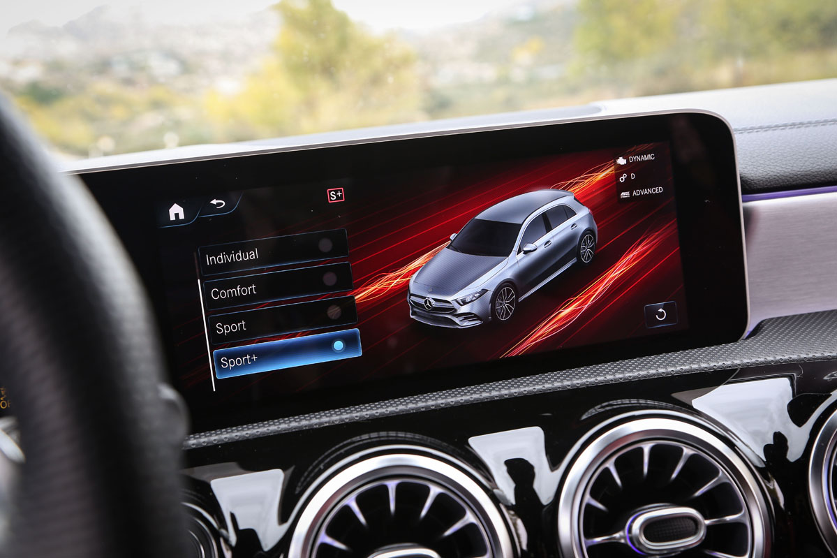 La suspensión, con un tarado más firme que en el resto de los Clase A cuenta con el grado perfecto de dureza para sujetar con firmeza la carrocería sin llegar a ser incómoda. En el listado de opciones aparece aquella con amortiguadores controlados electrónicamente que, seguramente, eleve tanto el feeling deportivo como el confort de marcha en función del programa escogido.