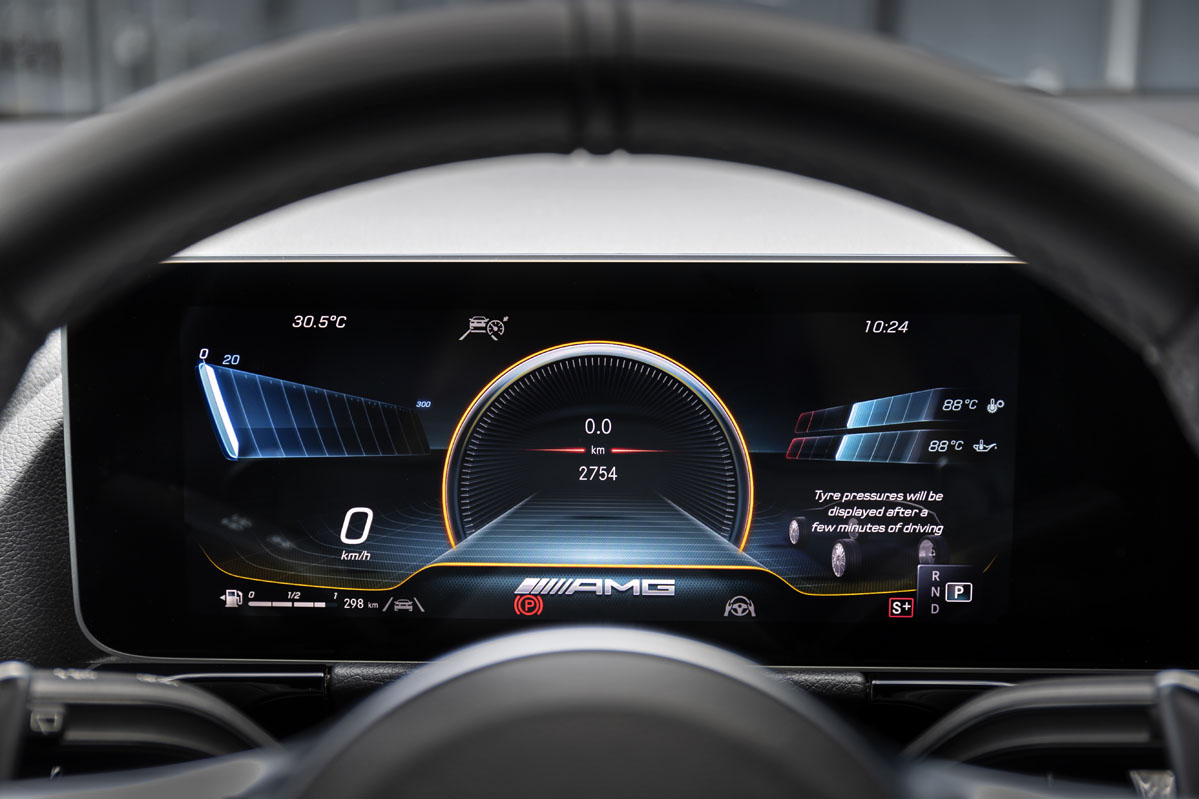La calidad del interior sigue siendo uno de sus puntos fuertes, y está por encima de sus rivales naturales. Sigue caracterizándose por su amplia pantalla central, que parecen dos tablets juntas, de 7 pulgadas de serie y más de 10 en opción. Redondean la receta excelentes acabados y materiales, que en los AMG incluyen fibra de carbono, volante en piel asimétrico, asientos tipo bacquet que sustentan el cuerpo a la perfección y detalles en amarillo que dan un generoso aspecto racing a la cabina. Sin duda alguna, este coche no ha sido creado para los más clásicos compradores de Mercedes.