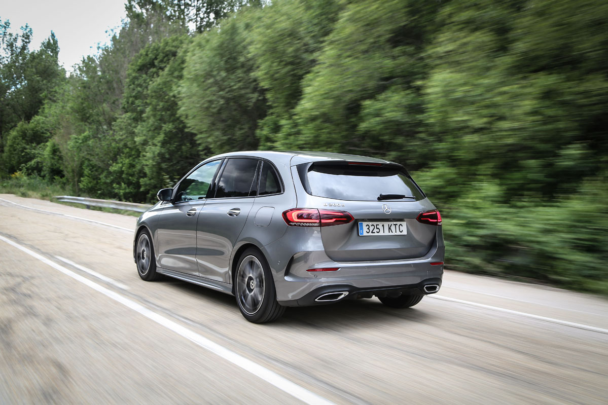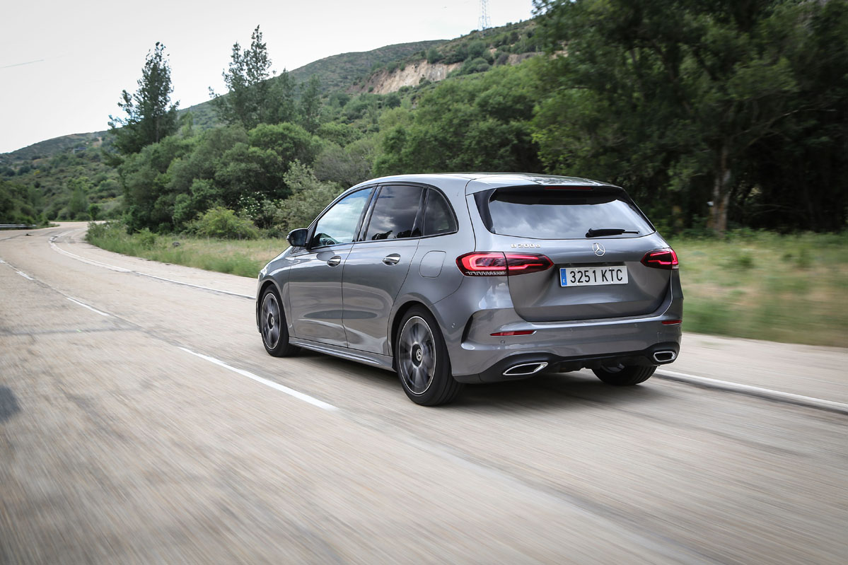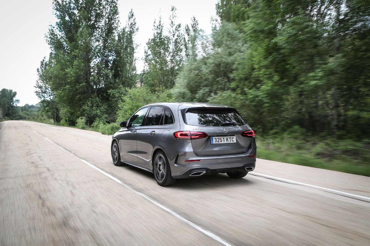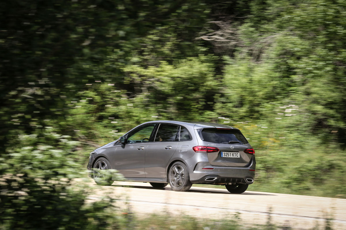 La versión de la prueba, el Mercedes B 200 d 8G-DCT, equipa un motor 2.0 de cuatro cilindros capaz de rendir 150 CV. Es energético y más que suficiente como para optar por el 220d, de 180 CV. Su garra se ve incrementada cuando pasa de las 2.000 rpm, ofreciendo una considerable patada que te pega al asiento cuando la aguja, digital, pasa de las 2.500 vueltas. Funciona realmente bien con el cambio automático de doble embrague, que en el caso de este motor es de ocho velocidades y no de siete. Asimismo, está bien insonorizado y en carretera se agradece su transmisión porque el motor va muy desahogado y, por lo tanto, la rumorosidad es menor. Lo que no me ha hecho tanta gracia del cambio es al iniciar la marcha desde parado, que es demasiado brusco, por lo que hay que andar con tiento a la hora de pisar el pedal derecho. Si a ello se suma un detector de obstáculos con parada demasiado intrusivo que detiene el coche con bastante distancia... Aparcar en cuesta puede ser algo molesto. ¿Lo bueno de esta asociación motor-cambio? Que su consumo medio puede mantenerse sin problemas en los 5,5 l/100 km.