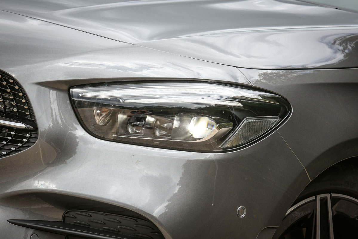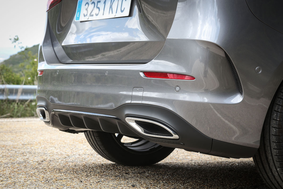 Y es que he de reconocerte que si hace tiempo hubiese tenido que comprarme un coche de holgado espacio, el Clase B con paquete AMG de la generación anterior hubiera sido mi opción número 1. Eso hasta la aparición de la segunda, hace escasos meses. Como podrás ver en las fotografías, su imagen suma aún más puntos positivos. La forma de sus faros, más afilados, y la ubicación de estos, en una posición más baja, hacen que el frontal sea más dinámico. También lo consigue la línea de techo con una caída más pronunciada. Tampoco pasan desapercibidas un par de importantes novedades: el difusor posterior, que ahora está más cerca del suelo, y las ópticas más delgadas.