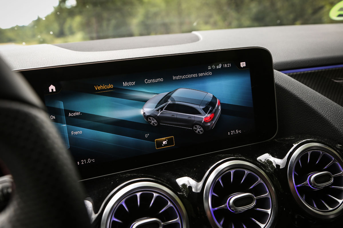 Asimismo, puede equipar el Active Distance Assist DISTRONIC, que mantiene la distancia con el coche que le precede, aumentado o reduciendo la velocidad; el de frenada de emergencia o el asistente de mantenimiento y cambio de carril, que en más de una ocasión ha frenado de forma brusca, sin un motivo muy evidente de peligro, como ya me pasó con el Clase A.