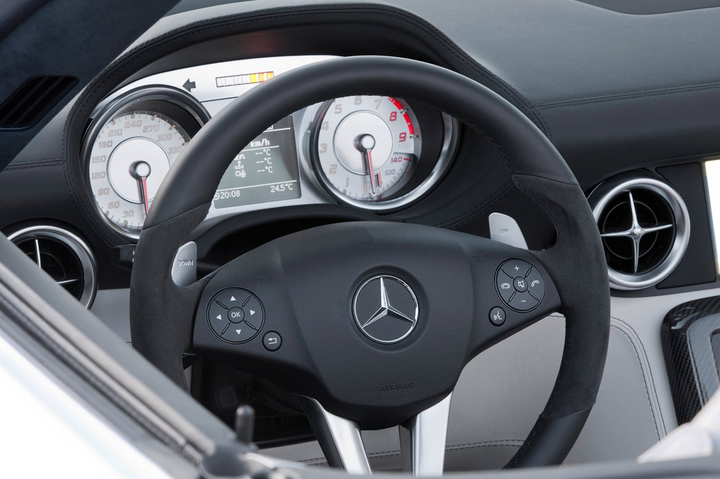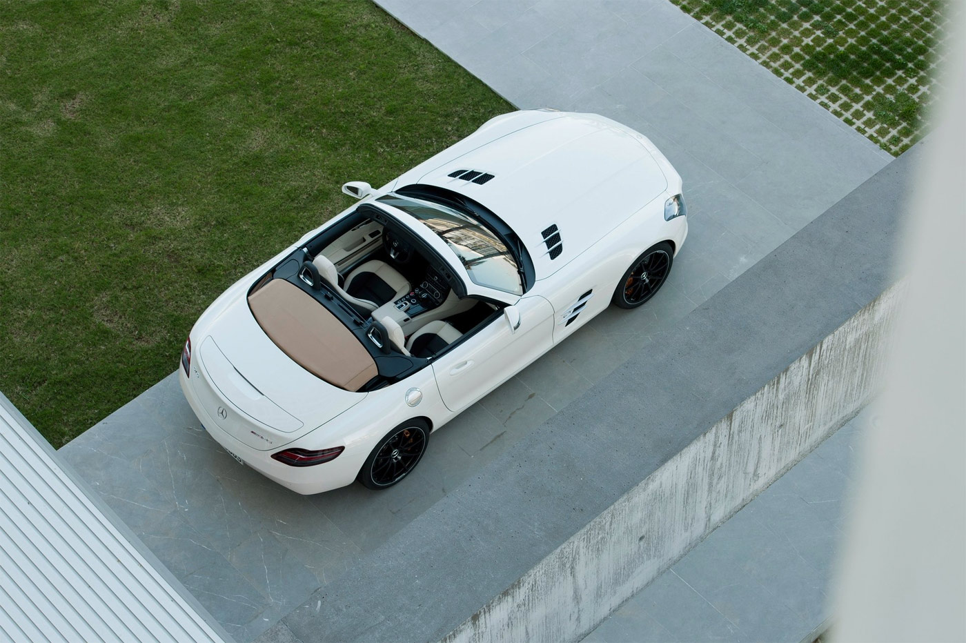 Sin embargo, todavía había margen para dotar al modelo de un mayor punto de exclusividad. ¿Cómo? Pues como puedes ver en el Mercedes-Benz SLS AMG Roadster de esta prueba, permitiendo al conductor y su acompañante rodar a cielo abierto.