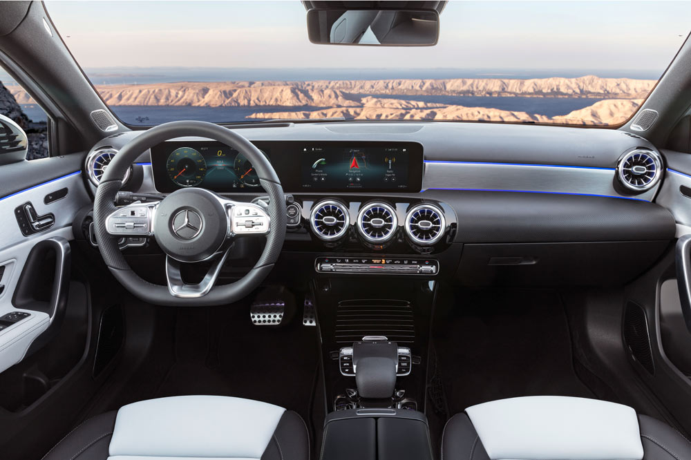 Y es el interior es donde se halla la revolución, no por el espacio a bordo, que también merece ser mencionado, sino por su diseño y la tecnología que incorpora. Presenta unos trazos y una destacada calidad percibida que le encumbran a lo más alto de su competido segmento; lástima que algunos materiales sean mejorables, como los de los mandos de los elevalunas, los de la palanca del cambio -colocada en el columna del volante, como buen Mercedes- o las levas. Los difusores de ventilación iluminados en forma de turbinas son excepcionales, pero el summum son sus dos pantallas fundidas en una misma cubierta de cristal.
