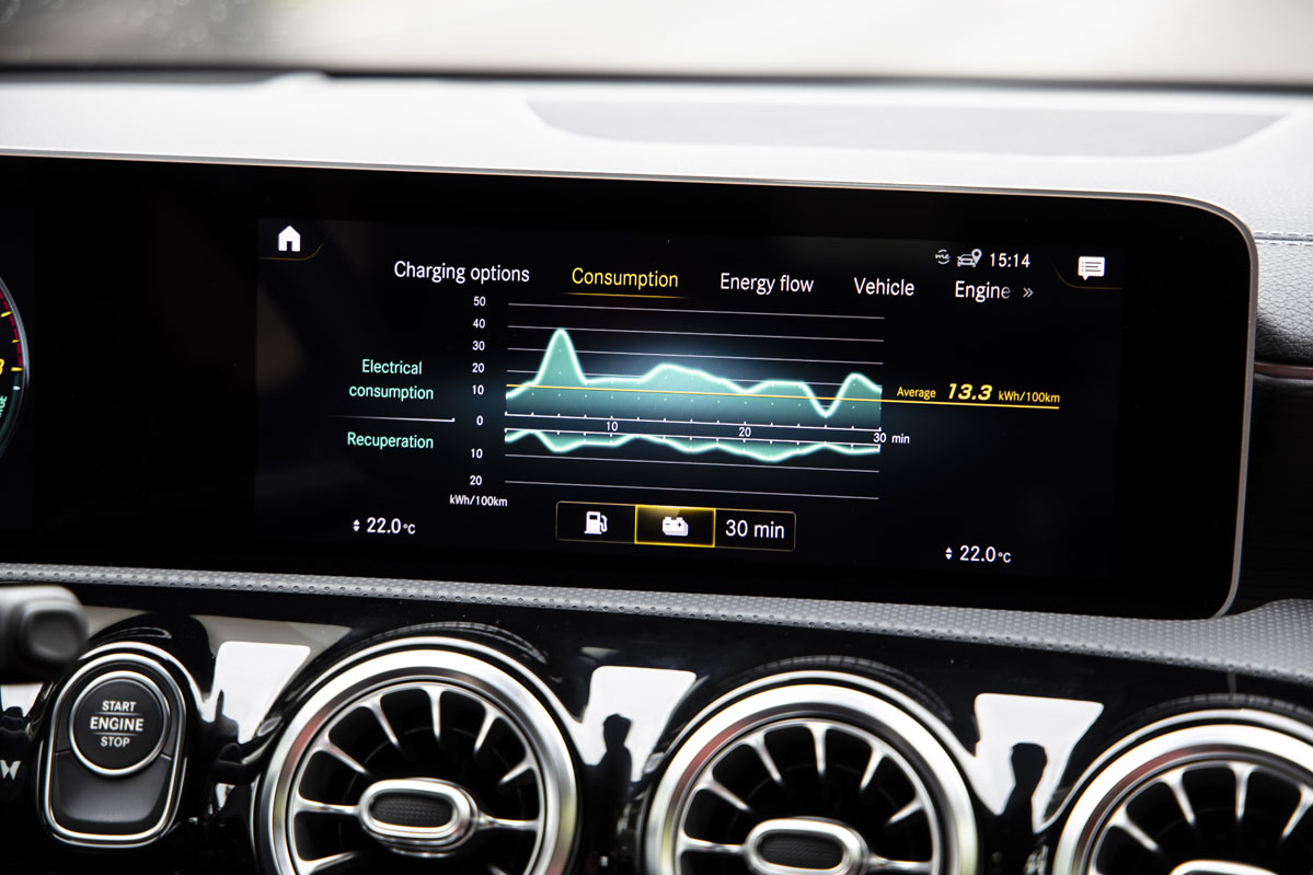 Por ello, hemos elegido para la prueba el Mercedes Clase A 250 e, que junto al Clase B, CLA y GLA equipa el motor eléctrico más pequeño, el de 75 kW, y la potencia más 'contenida', 218 CV, aunque no la autonomía más pequeña, puesto que presume de más de 70 kilómetros en ciclo WLTP. También porque junto con el SUV compacto es el que más pedidos en firme tiene.