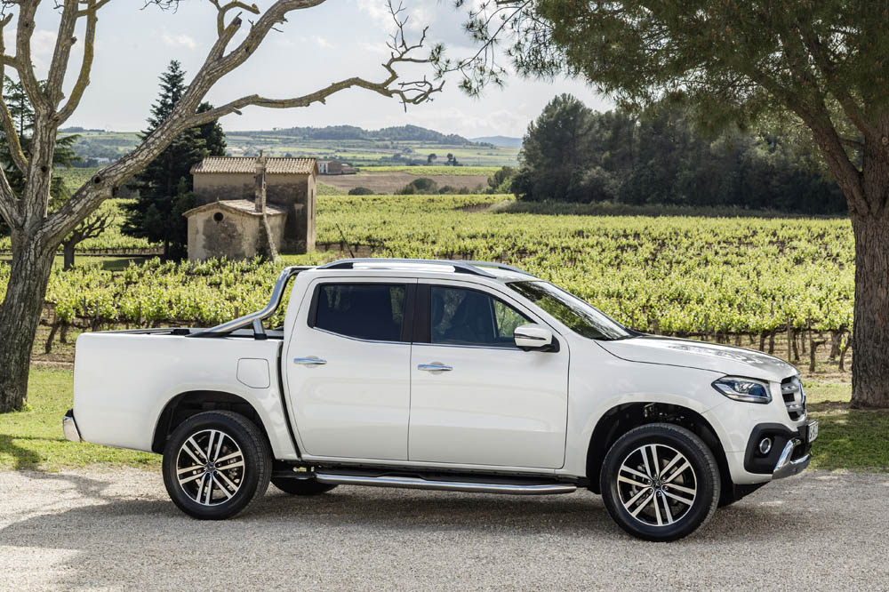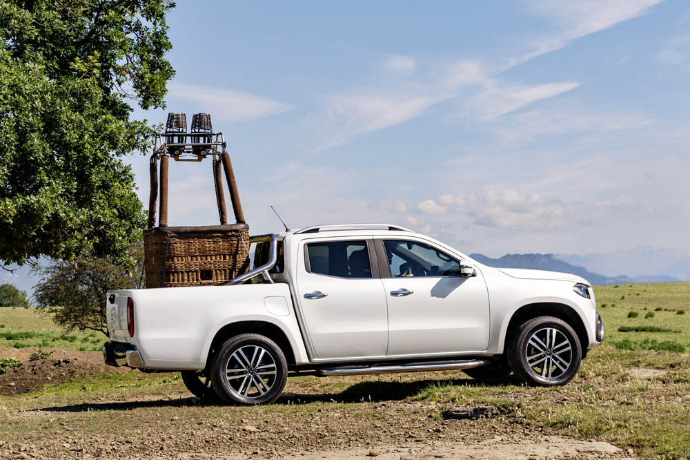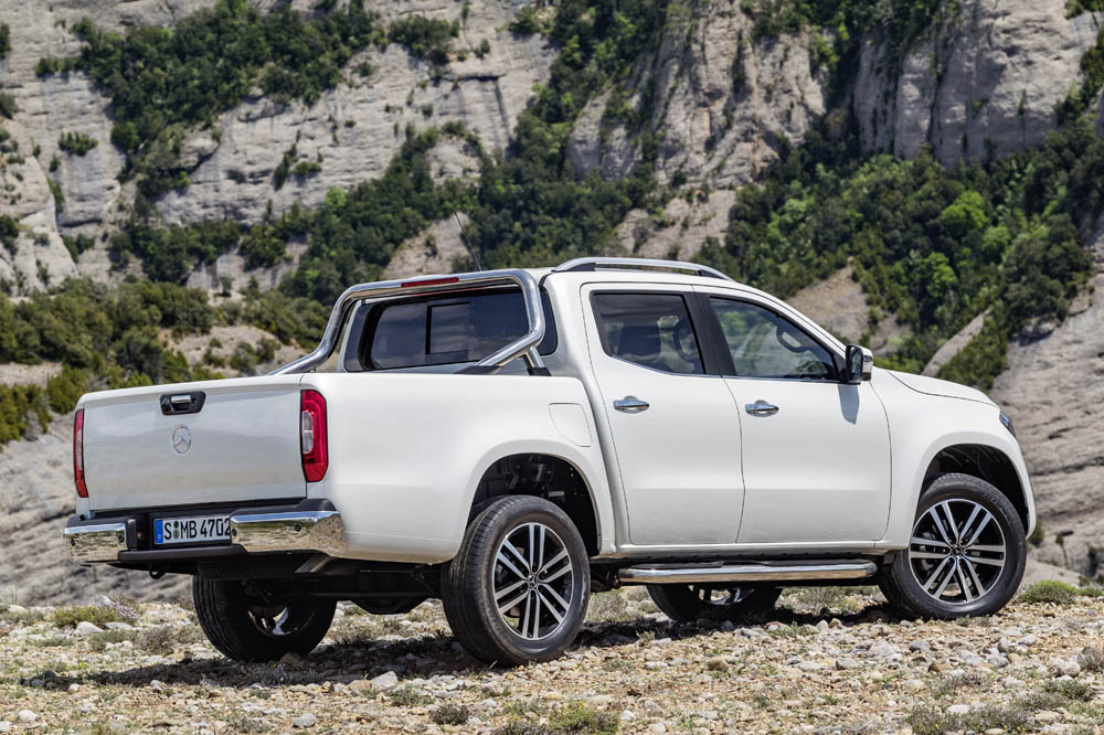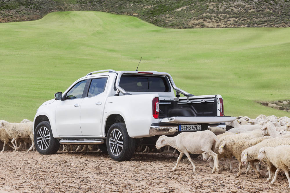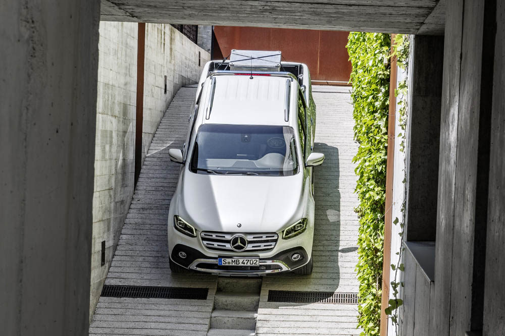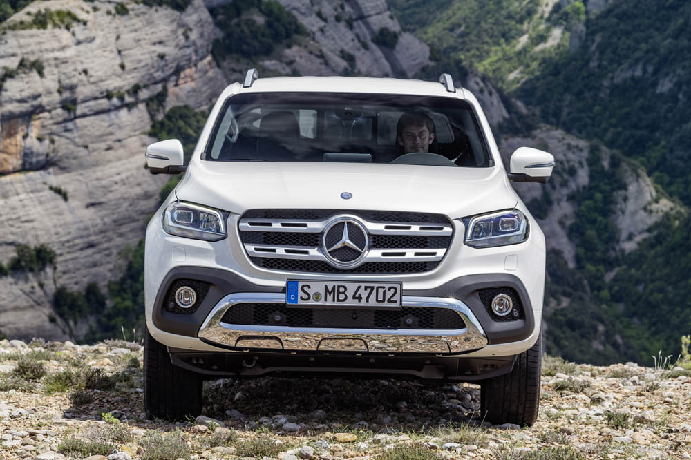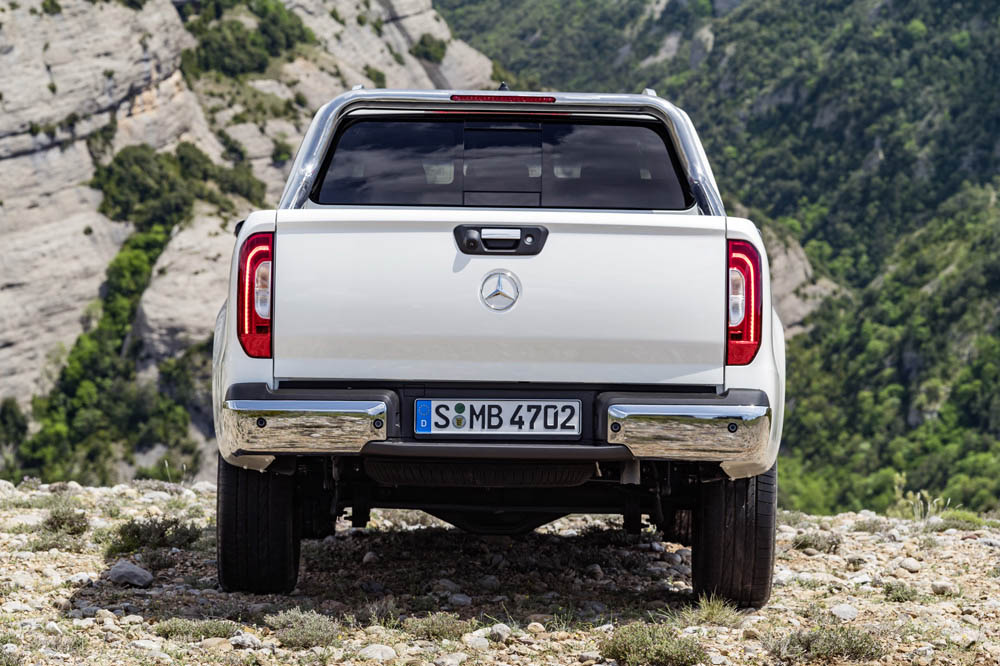 Frente a frente confirmo que es el pick-up más sugerente del mercado; y eso que ha dejado en el cajón alguno de los trazos del vehículo conceptual, el Concept X-Class. Lástima. El morro, que me recuerda a los parientes GLC (prueba) y GLC Coupé (prueba), adopta el lenguaje de diseño de los últimos automóviles de la casa. Eso sí, tanto el perfil como la zaga son más Navara.