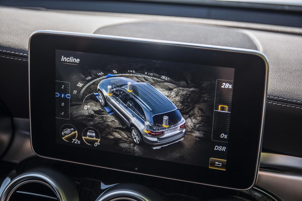 Igualmente impresionante es el paquete Off-Road, que probé en un circuito especial preparado por la marca. Con él, Mercedes quiere demostrar la capacidad todoterreno de su producto. En esta prueba, el GLC fue capaz de superar lo mismo una empinadísima subida de rocas que un inestable camino de arena, todo ello con una facilidad que definitivamente no se sospecha cuando vemos por primera vez el coche. El paquete cuesta 1.823 euros e incluye: paquete técnico Off-Road, protección técnica de bajos, tren de rodaje con mayor altura libre al suelo y peldaños en efecto aluminio con tacos de goma, además de símil de cuero Artico negro.