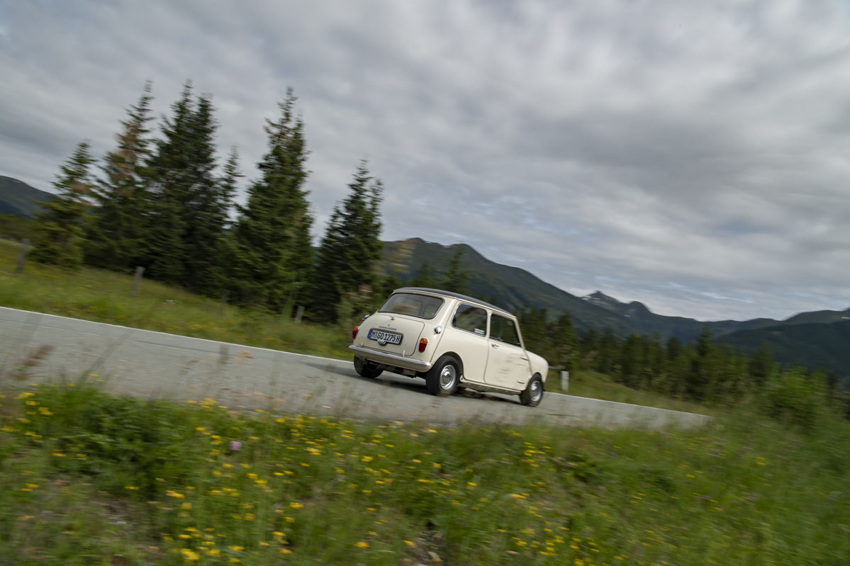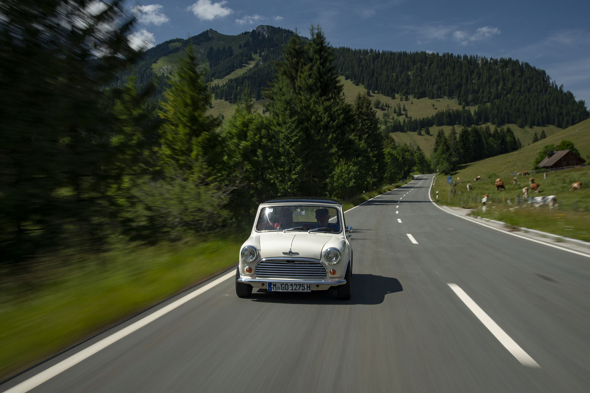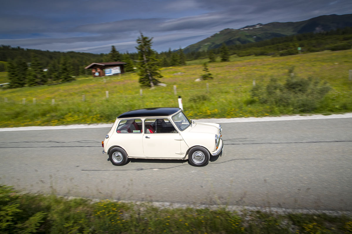 Uno no se extraña en absoluto de que esta máquina fuese imbatible en las pruebas en las que la velocidad media de los tramos no fuese muy alta. En las rectas pronto llegamos a su velocidad punta, pero es que apenas hay que frenarlo cuando llegamos a lo virado. Sus rivales de la época eran claramente más potentes y lo perdían de vista en cuanto uno podía pisar el acelerador sin contemplaciones, pero para el Mini, los tramos virados del Montecarlo eran casi una autopista. Es tan compacto que en una carretera secundaria nuestro carril da de sobra para trazar perfectamente cada curva, porque casi caben dos Mini en paralelo sin pisar ninguna de las dos líneas.