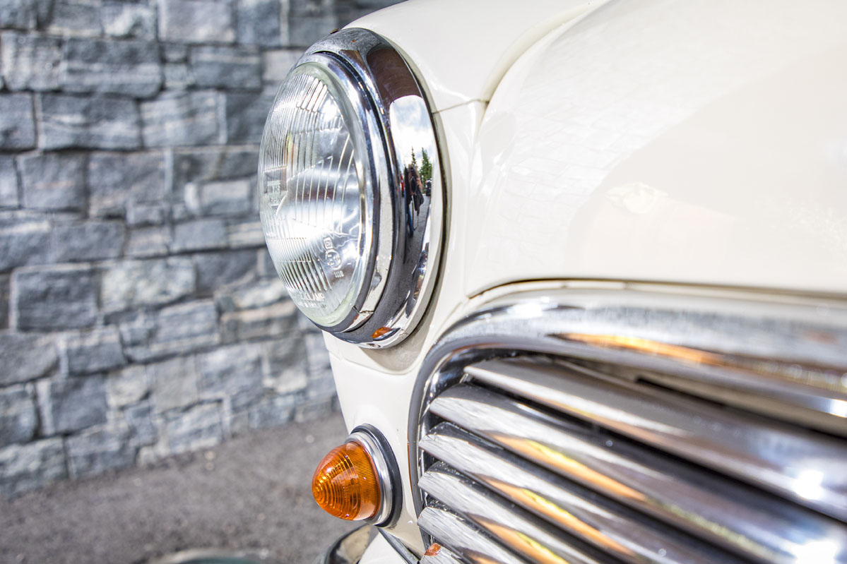 El Mini original se mantuvo en producción desde 1959 hasta el 2000 sin apenas cambios aparentes, pero en ese tiempo evolucionó. El primer cambio, y el más llamativo, llegó en 1967 con una nueva parrilla más grande, una ventana trasera también de mayores dimensiones y unos pilotos traseros más rectilíneos y grandes. El modelo que tengo ocasión de probar es justo anterior a este cambio, un auténtico Mini MK1 1275 Cooper S pata negra, con sus pilotos redondeados, su parrilla más elegante, sus ventanillas de corredera y sus bisagras a la vista.