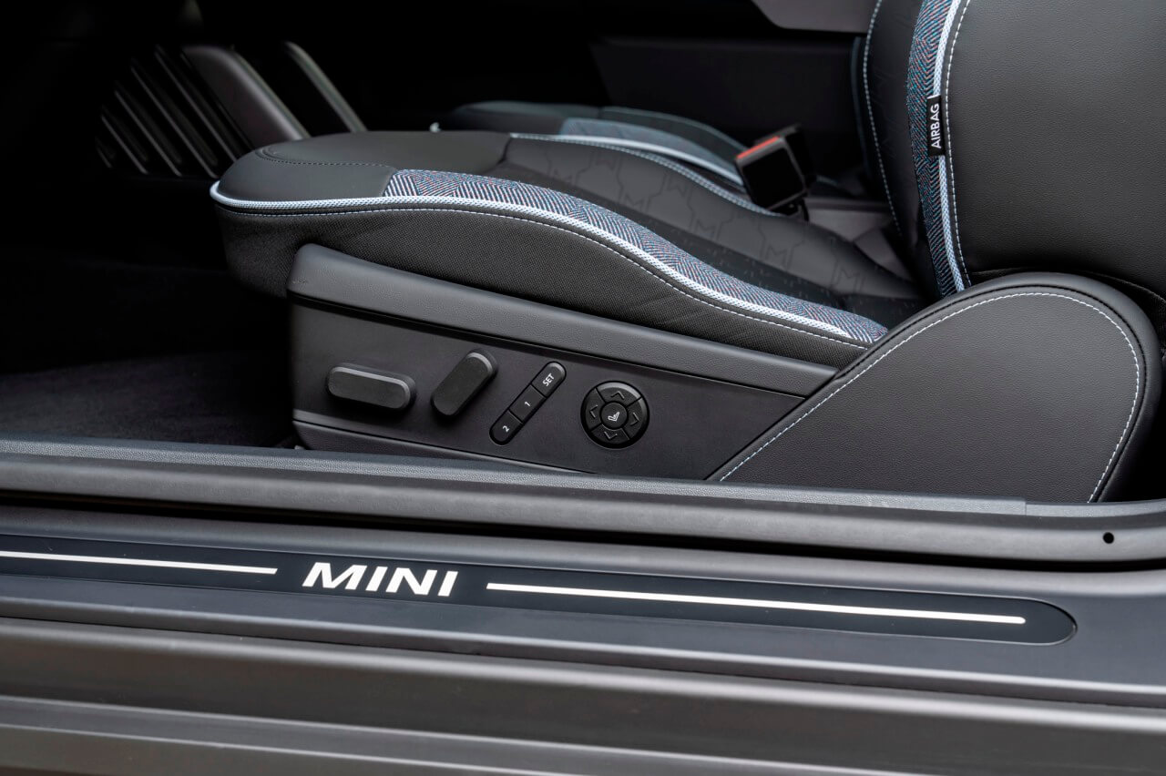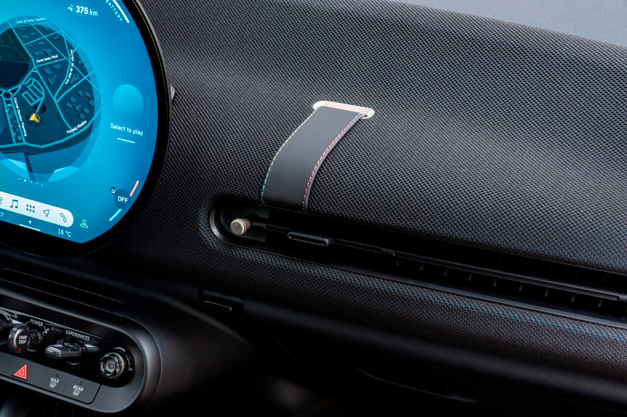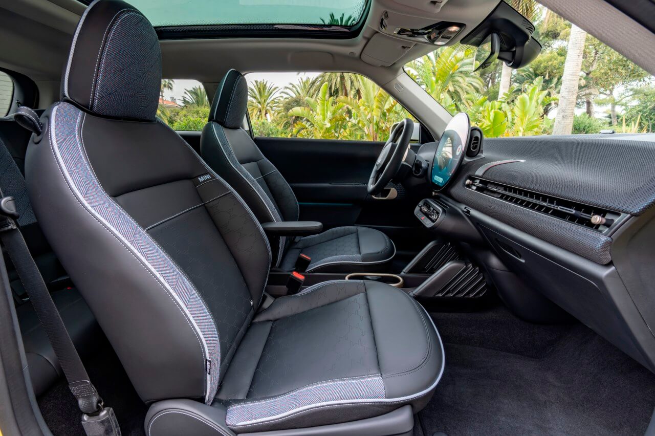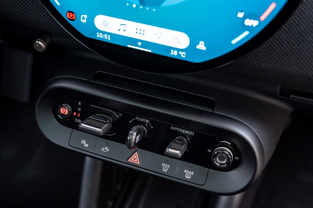 Todo este repertorio hace que el interior del nuevo MINI Cooper SE 2024 se vea y se sienta muy tecnológico. A esto hay que añadir los tapizados hechos de materiales reciclados que cubren el salpicadero y los paneles de puerta. Al mismo tiempo, los asientos están terminados en cuero vegano, tienen un diseño muy deportivo con cabezales integrados y ofrecen una excelente sujeción del cuerpo gracias a los refuerzos de los laterales de los respaldos delanteros. Y también hay detalles como la unidad de la consola central donde se integran los controles físicos para arrancar el sistema de propulsión, gestionar la transmisión y acceder a las experiencias MINI.