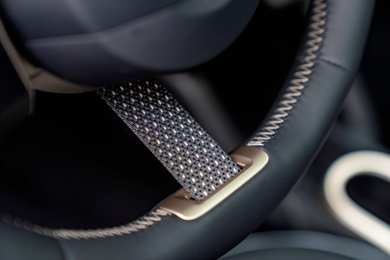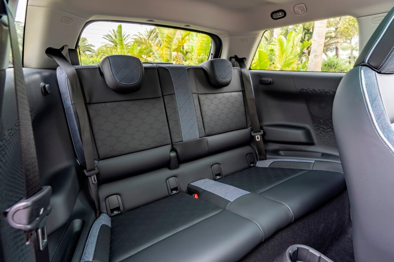 En cuanto a acabados y calidad percibida, todo se siente sólido, bien rematado, con materiales gomosos para absorber vibraciones y que no se generen ruidos desagradables en la cabina. También es agradable al tacto el cuero vegano que recubre los asientos. No lo es tanto el tejido que se encuentra en el salpicadero. Está hecho de poliéster reciclado y para su creación se emplea un proceso de tricotado a medida que crea una sensación al tacto que me ha resultado áspera, especialmente en la zona de los apoyabrazos de los paneles de puerta donde descansa el codo.
