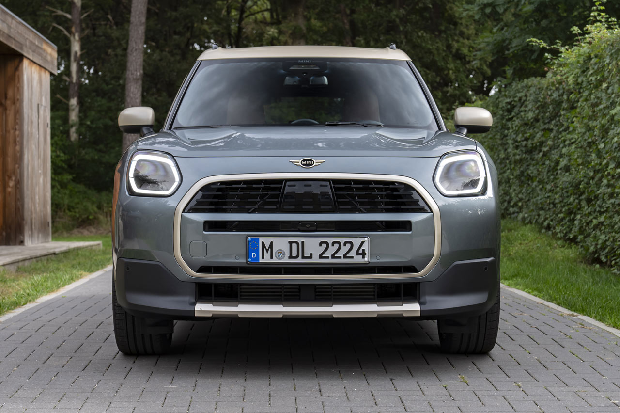 Las superficies son ahora más planas y los ángulos, más rectos. En el frontal nos encontramos con unos gropos ópticos que pierden ese bisel cromado que tenían en el Countryman hasta ahora; con una parrilla más grande que integra en su sección inferior el soporte para la matrícula. La parte baja del paragolpes presenta un embellecedor con acabado metálico, lo que enfatiza el carácter SUV del modelo.