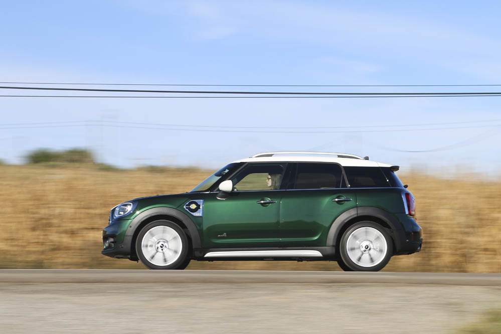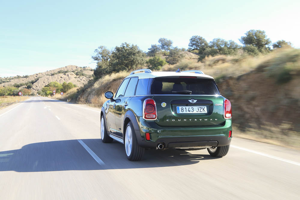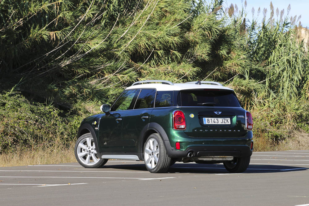 El color verde de mi MINI Countryman híbrido de pruebas le viene como anillo al dedo; un verde inglés que homenajea la historia del modelo y su carácter ‘british’, y a su vez el color más ‘eco’ que también encontramos en la imagen corporativa de los MINI híbridos, aunque en este caso con un acabado fluorescente. Estéticamente el nuevo MINI Countryman es interesante: se queda un poco en tierra de nadie. No es un SUV, pero tampoco me atrevería a decir que sea un compacto al uso. Si tengo que catalogarlo, sería más bien como un monovolumen compacto con ganas de convertirse en crossover. Esta particularidad ya hace que sea diferente y prácticamente no tiene rivales en el mercado. Su sistema híbrido todavía le hace ser más especial.