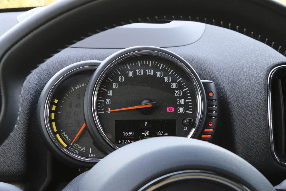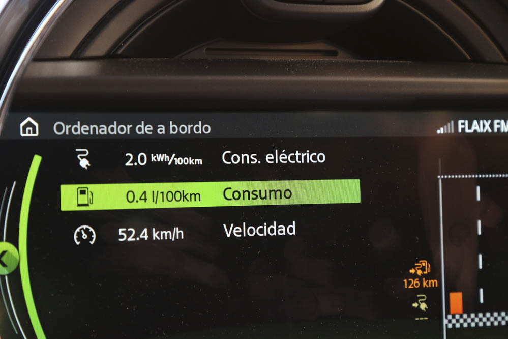 ¿Y bien? Pues tras este recorrido siendo muy cauteloso con el pedal derecho, pero también intentando simular una conducción normal (sin ir con los cuatro intermitentes y a 20 km/h) el MINI híbrido de esta prueba ha conseguido realizar 30 km en modo 100% eléctrico. ¡No está nada mal! Seguro que esta cifra se puede mejorar algo, pero tampoco mucho: calcula que en el mejor de los casos puede rondar los 35 km.