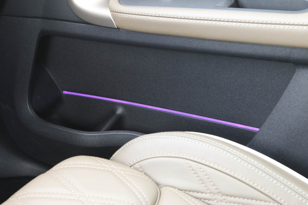 En el interior me encuentro con un habitáculo amplio y, de primeras, con una calidad intachable. Asientos tapizados con cuero y costuras a rombos; detalles chulos como la Union Jack en el volante y una iluminación ambiental que hace que desde el primer instante te sientas en una atmósfera premium. No obstante, no todo va a ser una cara bonita.