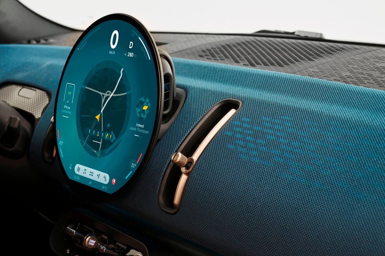 A pesar de su estilo minimalista, MINI ha integrado casi todas las funciones -que no son pocas- en la nueva pantalla OLED de 24 centímetros de diámetro que actúa como centro neurálgico del sistema de infoentretenimiento, el cual está operado por el sistema operativo MINI 9 e integra el nuevo asistente personal inteligente de la marca. El display táctil es la única pantalla disponible en el habitáculo, aunque el conductor cuenta con la ayuda de un Head-Up Display a color.