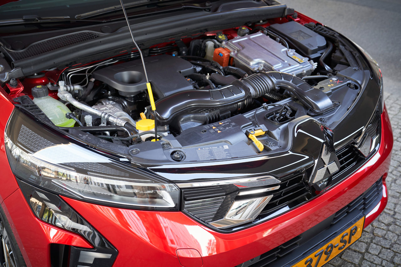 Este Colt híbrido no enchufable tiene un sistema de propulsión compuesto por un bloque de gasolina de cuatro cilindros capaz de rendir 94 CV, dos motores eléctricos (uno genera potencia y el otro hace de embrague) que trabajando con el propulsor térmico consiguen 145 CV, y una batería de 1,2 kWh.