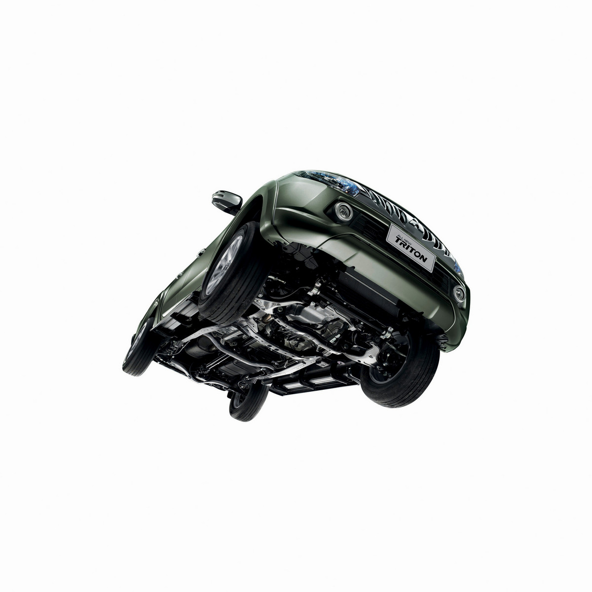 Como no podía ser de otra forma tratándose de un vehículo que previsiblemente será utilizado en campo y con carga, bajo esa sugerente carrocería se esconde un robusto chasis de largueros y travesaños que acoge un eje rígido con ballestas en el tren posterior y una suspensión independiente con dobles trapecios en el eje delantero. Durante la prueba del nuevo Mitsubishi L200 he notado una clara mejoría en el confort que ofrecen estas últimas, que absorben mejor que antes pequeñas irregularidades, especialmente el eje trasero, que es el habitual punto debil de los pick-up europeos.