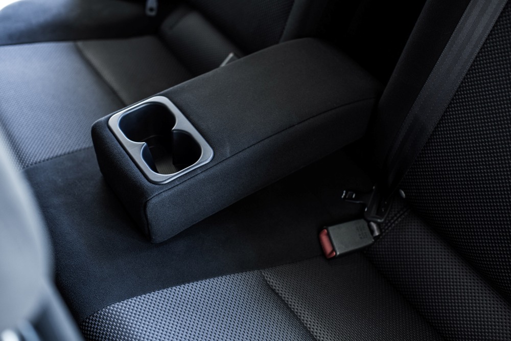 En los asientos traseros el espacio es generoso, tanto para piernas como para hombros y cabeza. Esperaba encontrarme más apretado. No obstante, también hay peros. Principalmente, los materiales. Son plásticos de una apariencia y un tacto pobre, aunque, al menos los asientos son cómodos y su acolchado y la tapicería están muy bien. En el apoyabrazos central hay dos espacios para un par de vasos.