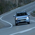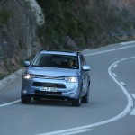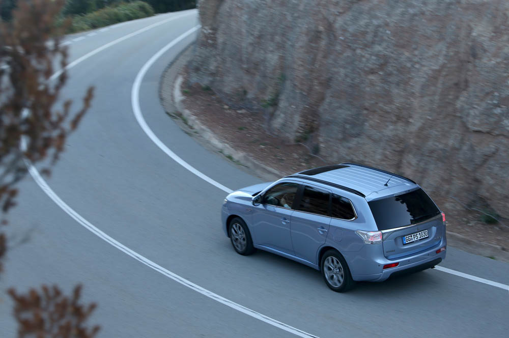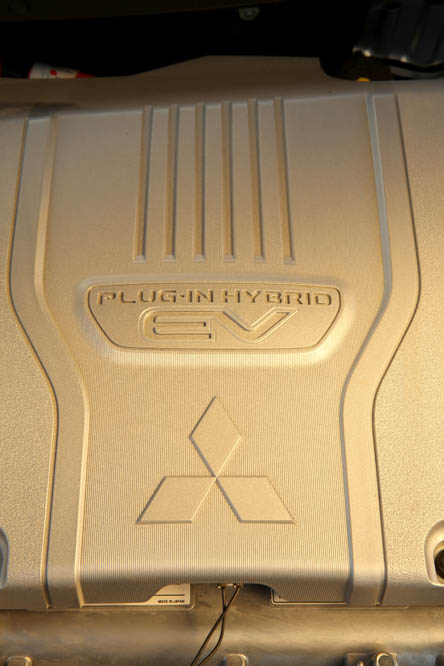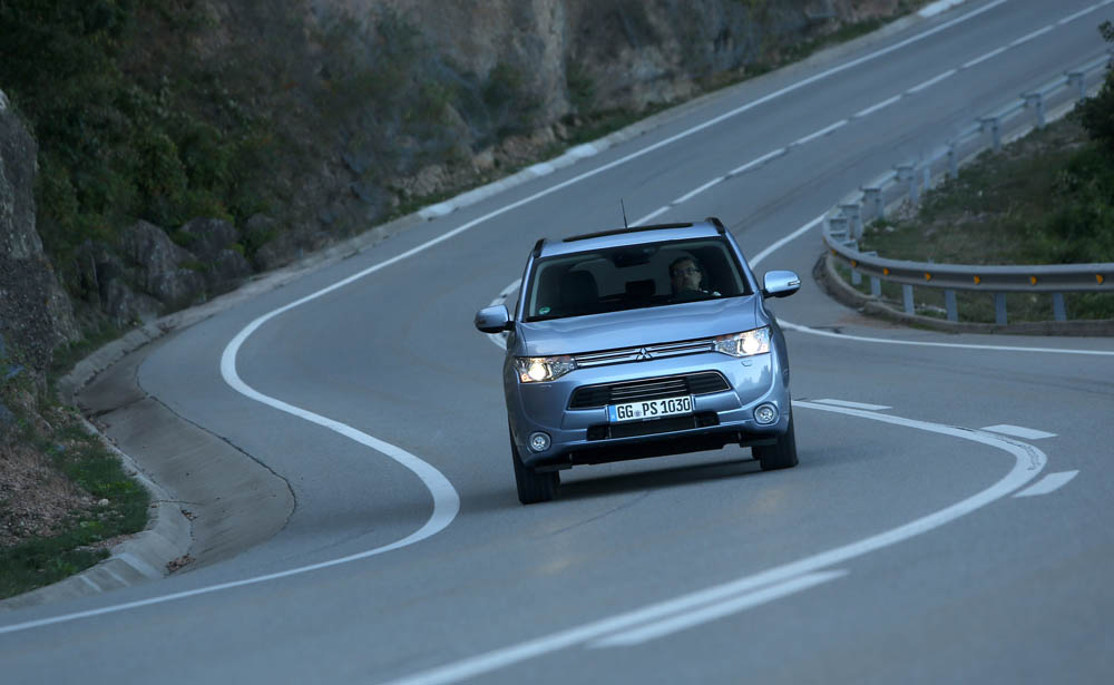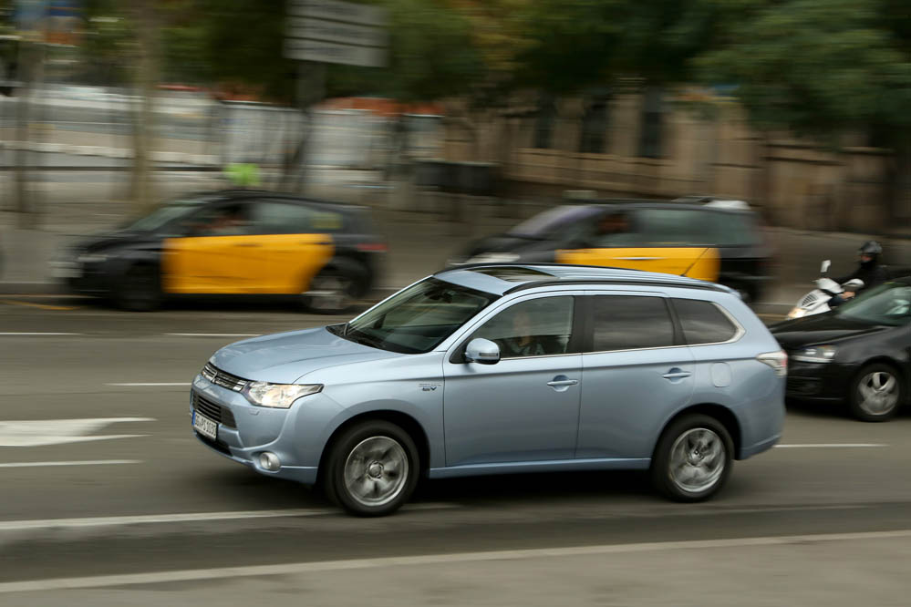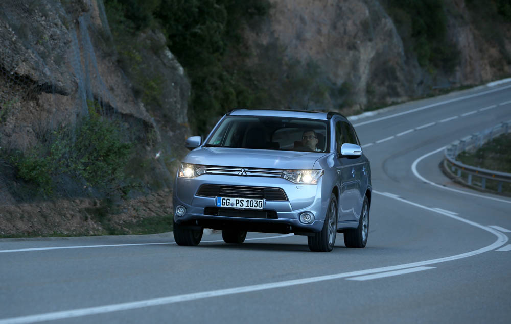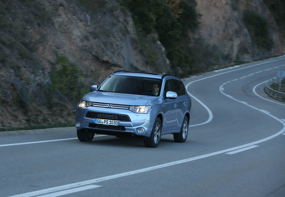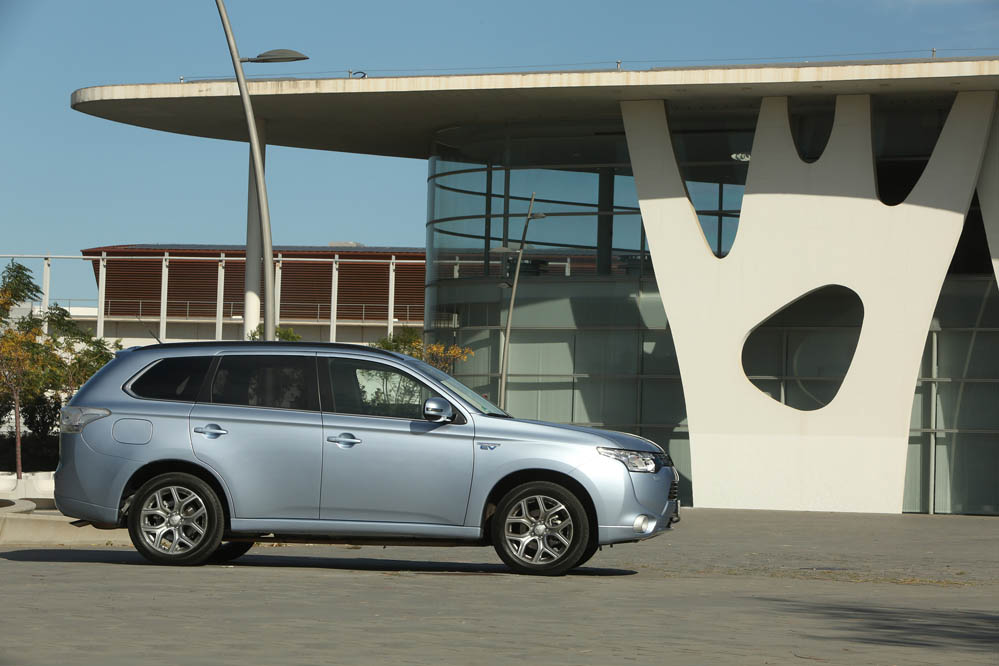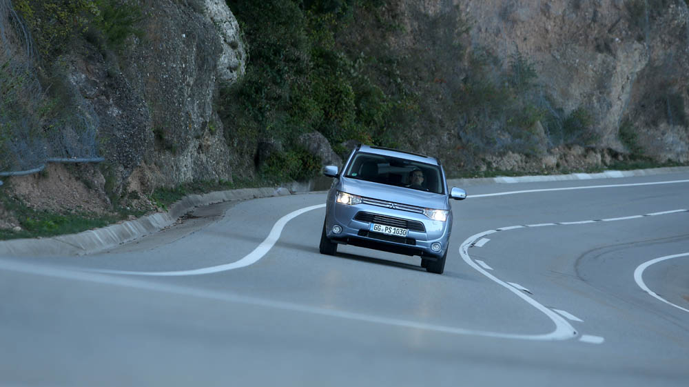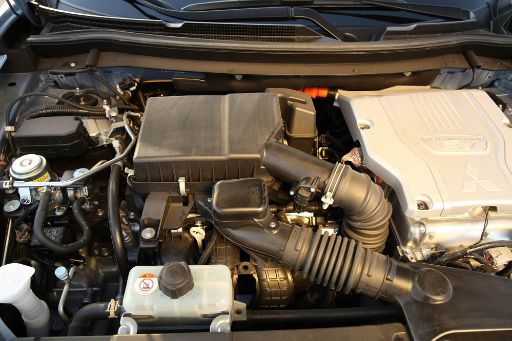 El sistema PHEV de Mitsubishi proporciona el 100% del par de modo instantáneo desde parado. La compañía de los diamantes dice que “la aceleración es similar a la un motor V6 de 3.0 litros”; cierto que el paso de 0 a 50 km/h impresiona, pero tampoco hay que exagerar. También ese torrente de energía decrece cuando se sobrepasan los 90 km/h, algo que, por ejemplo al (prueba) Volkswagen Golf GTE no le ocurre gracias a su cambio DSG.