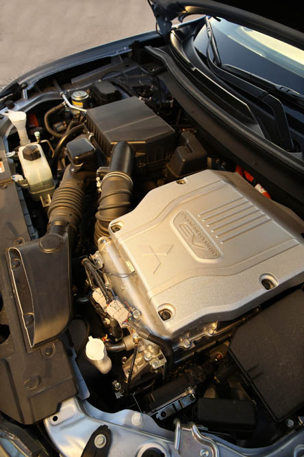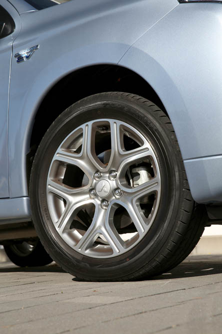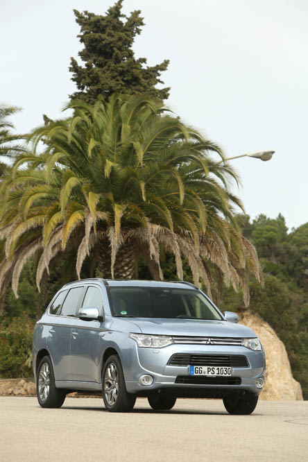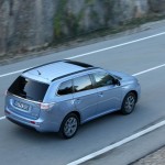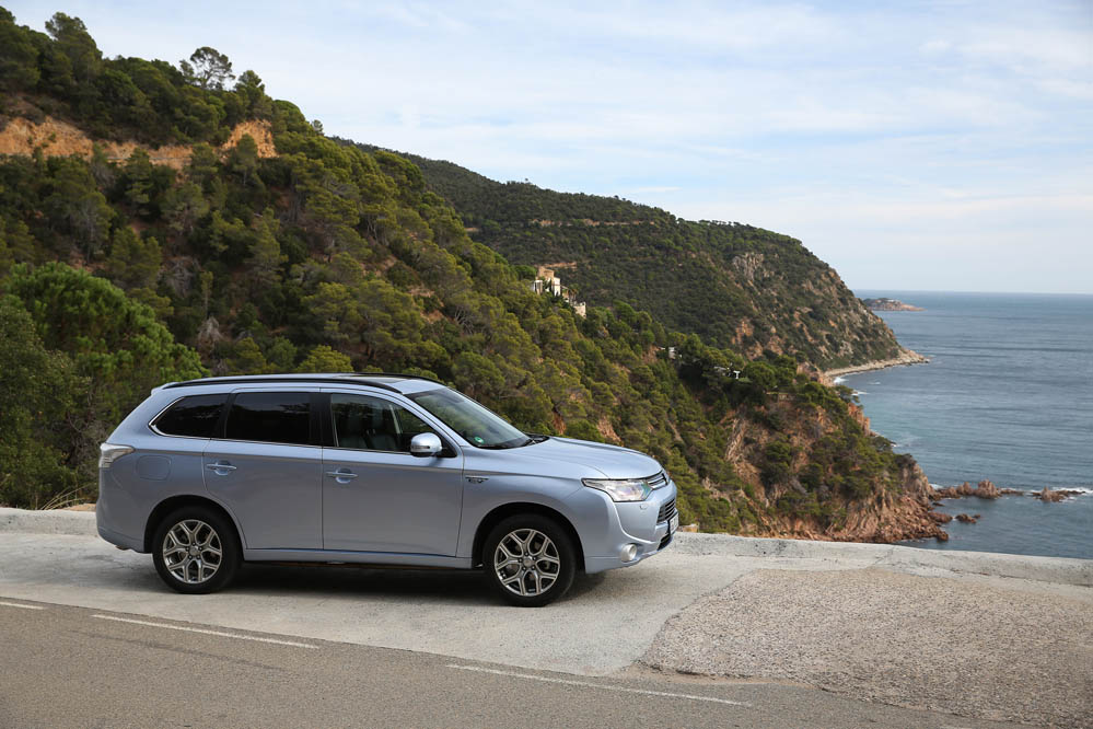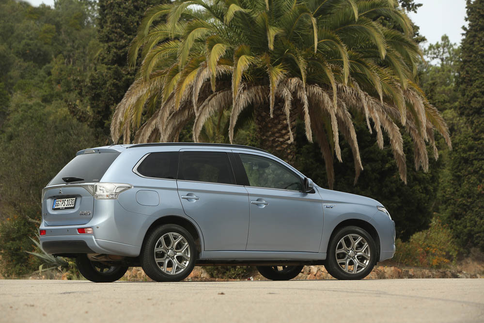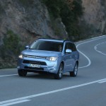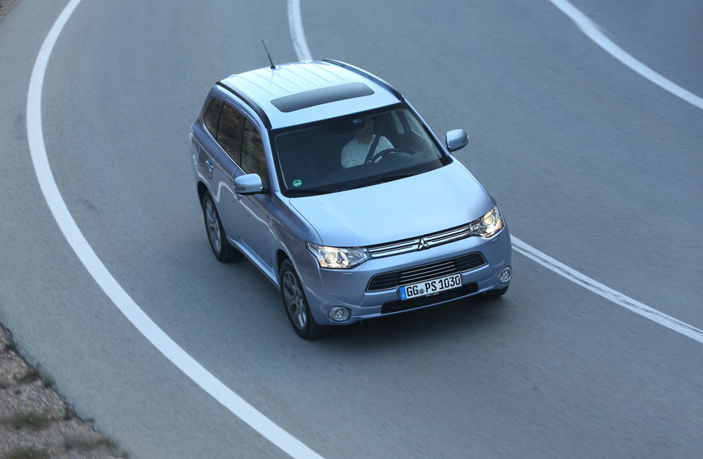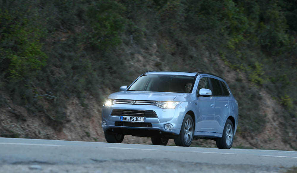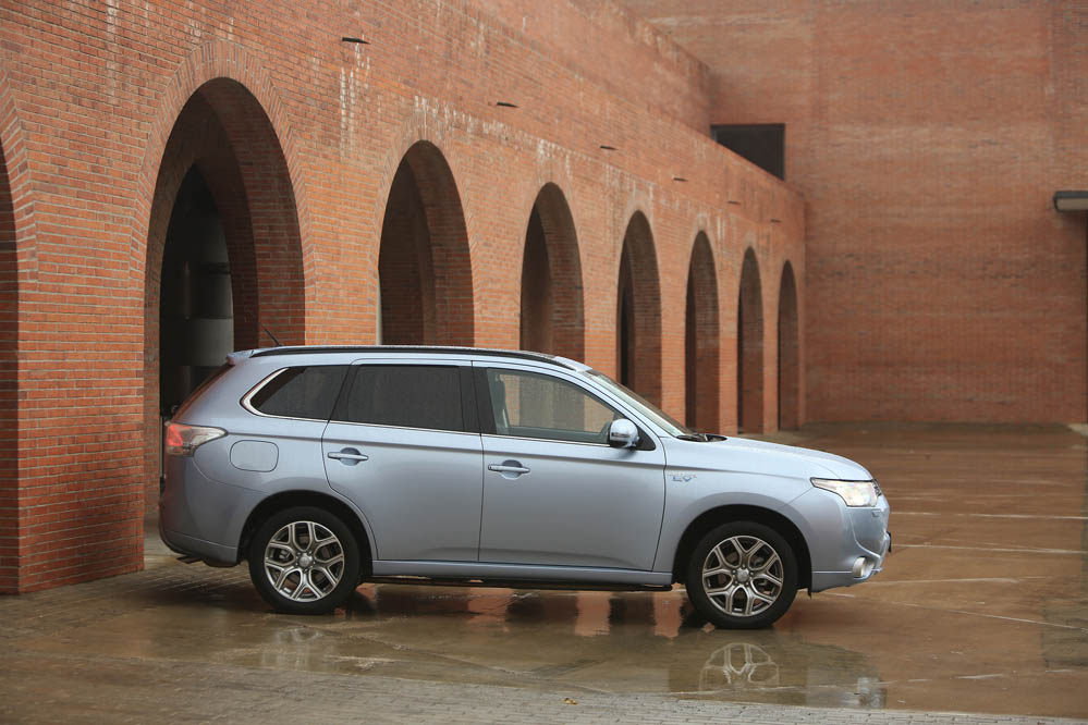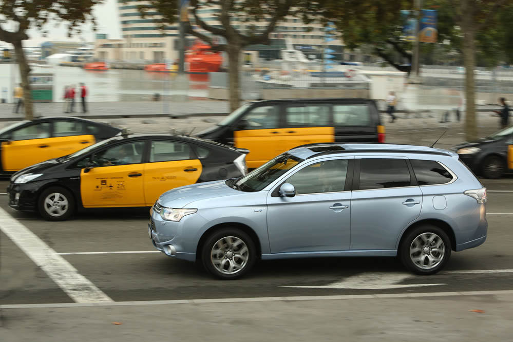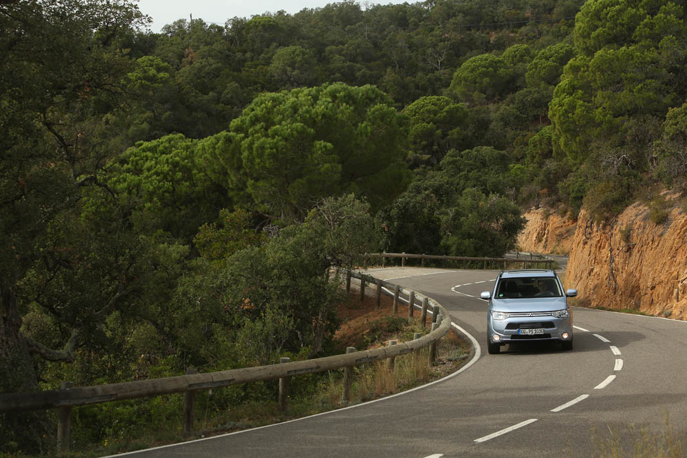 El sistema PHEV de Mitsubishi proporciona el 100% del par de modo instantáneo desde parado. La compañía de los diamantes dice que “la aceleración es similar a la un motor V6 de 3.0 litros”; cierto que el paso de 0 a 50 km/h impresiona, pero tampoco hay que exagerar. También ese torrente de energía decrece cuando se sobrepasan los 90 km/h, algo que, por ejemplo al (prueba) Volkswagen Golf GTE no le ocurre gracias a su cambio DSG.