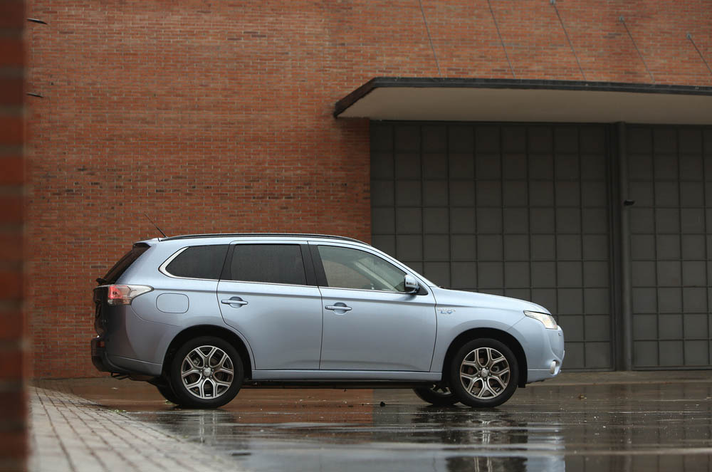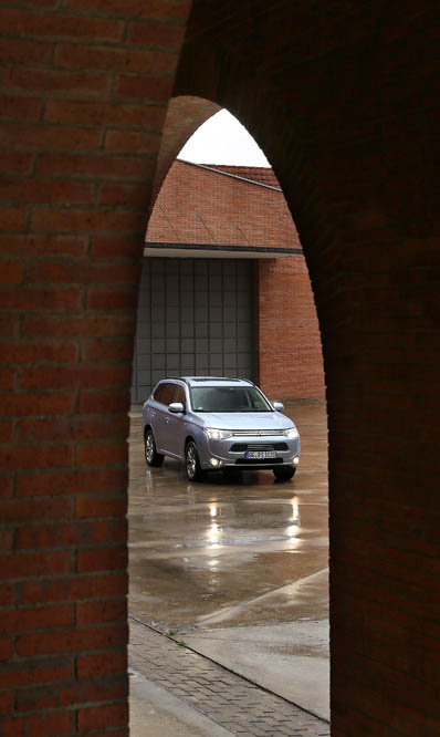 El vehículo puede ‘jugar’ con todos ellos para ofrecer la respuesta más adecuada, agradable o eficiente, y de forma casi imperceptible al oído, aunque el conductor también entre en escena gracias a los mandos de los que dispone. En un principio, y siempre y cuando la batería esté cargada, el vehículo se mueve con los dos propulsores eléctricos, ofreciendo, de este modo, una suavidad y una tranquilidad encomiable durante 52 km, que es su autonomía, aunque yo no he conseguido más de 43. Esta calma, perfecta para moverse por cuidad a coste 0 de gasolina, se mantiene por debajo de los 120 km/h, a no ser que el conductor exija más potencia de los 162 CV ofrecidos o el nivel de carga esté por debajo del 30%, que es entonces cuando se conecta el motor de combustión para alimentar el generador, recargando así las baterías de tracción. Si hundes el pie en el acelerador, que no suele ser lo habitual a no ser que realices un adelantamiento o necesites más fuerza en un repecho, la calma deja paso a la tempestad, y es que el ruido es mucho mayor, a pesar de lo bien insonorizado que está –monta un parabrisas específico, ventanillas más gruesas y los bajos han sido modificados-. Por último, cuando el Outlander necesita de todo su potencial se activa el modo Híbrido paralelo, donde el motor de combustión, que es apoyado por los dos eléctricos, acciona las ruedas delanteras a través de un embrague y… ¡voilà! 203 CV de potencia máxima.
