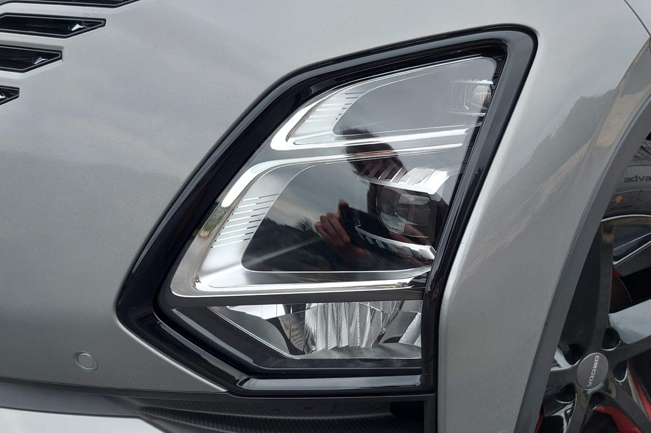 Esta está flanqueada por unos grupos ópticos de ledes divididos en dos secciones: unos arriba, junto al borde del capó, que hacen las veces de luces diurnas; y otros en los laterales que asumen el papel de iluminación principal. La vista lateral no está tan trabajada como el frontal y aunque hay cierto movimiento en la chapa, no resulta tan especial como ese morro.
