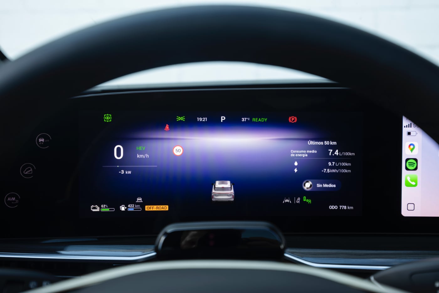 Sí echo en falta un comportamiento diferente entre el modo más manso y el más deportivo -hay Sport, Normal, ECO, Arena, Nieve y Todoterreno-, pero no he notado cambio ni en la suspensión ni en la dirección. Tampoco me importaría tener un modo custom en el que variar diferentes parámetros del coche como ofrece, por ejemplo, las marcas del Grupo Volkswagen.