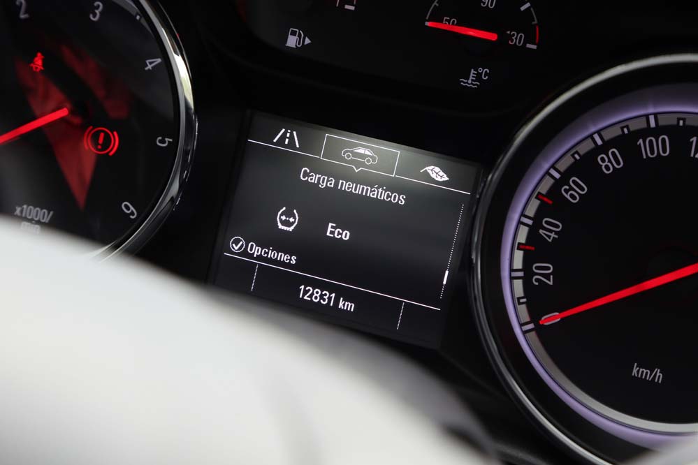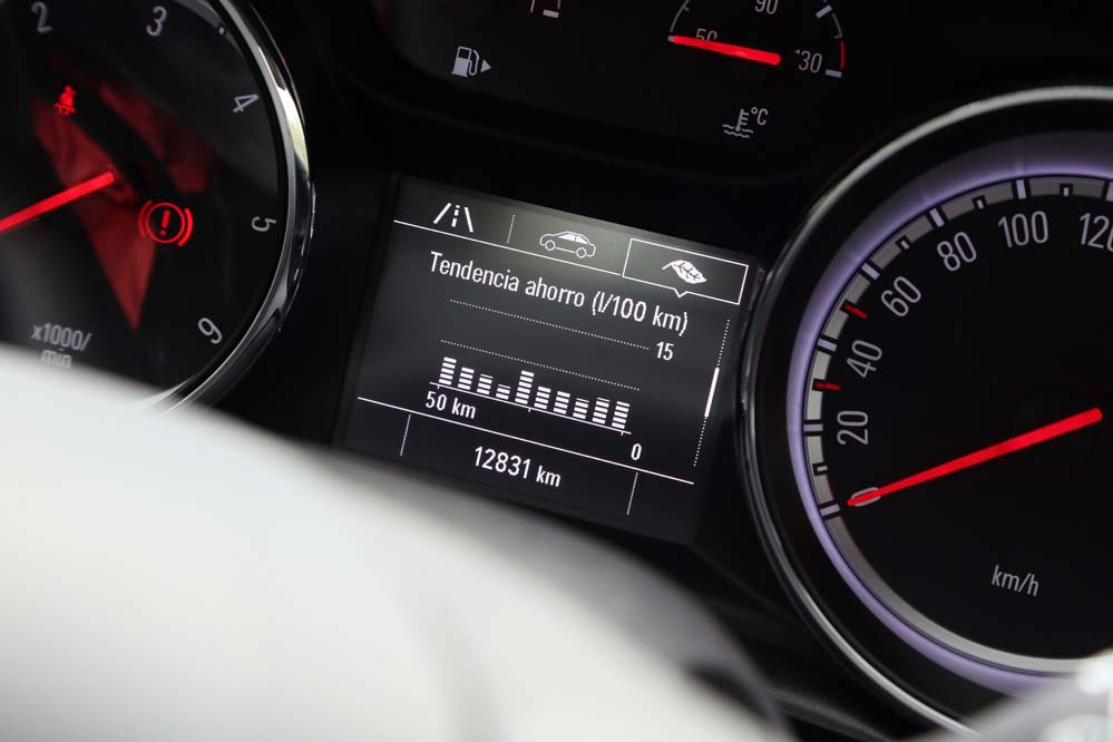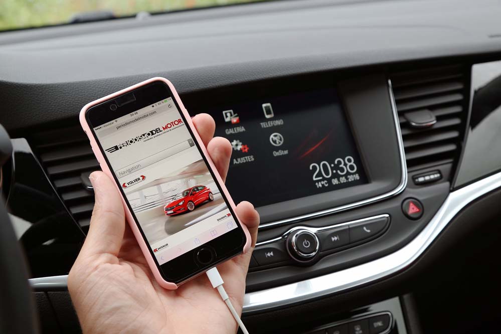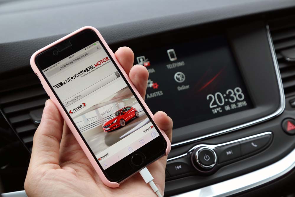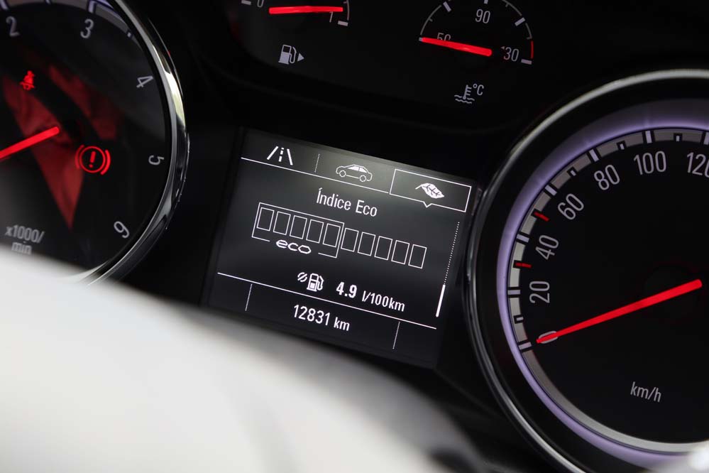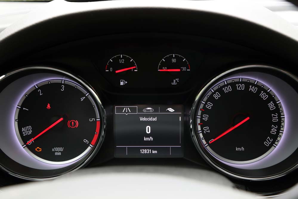 El sistema Opel Eye emplea una cámara frontal para asumir tareas orientadas a la seguridad en la conducción, como la detección de señales viales, el aviso y corrección de trayectoria en caso de cambio involuntario de carril, así como el aviso del mantenimiento de la distancia de seguridad y la frenada activa en ciudad para evitar una colisión -siempre que la velocidad sea inferior a los 60 km/h-. El apartado multimedia queda encargado a IntelliLink 4.0, que en la unidad probada se compone de una pantalla a color de siete pulgadas que permite duplicar la información mostrada en nuestro teléfono mediante Apple Carplay o Android Auto -incluyendo la navegación, que no está presente de modo nativo y requiere de 900€ extras para instalar el paquete Navi900-.