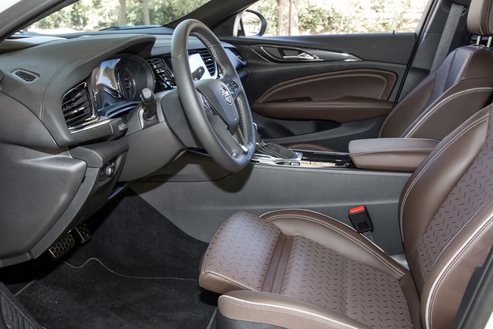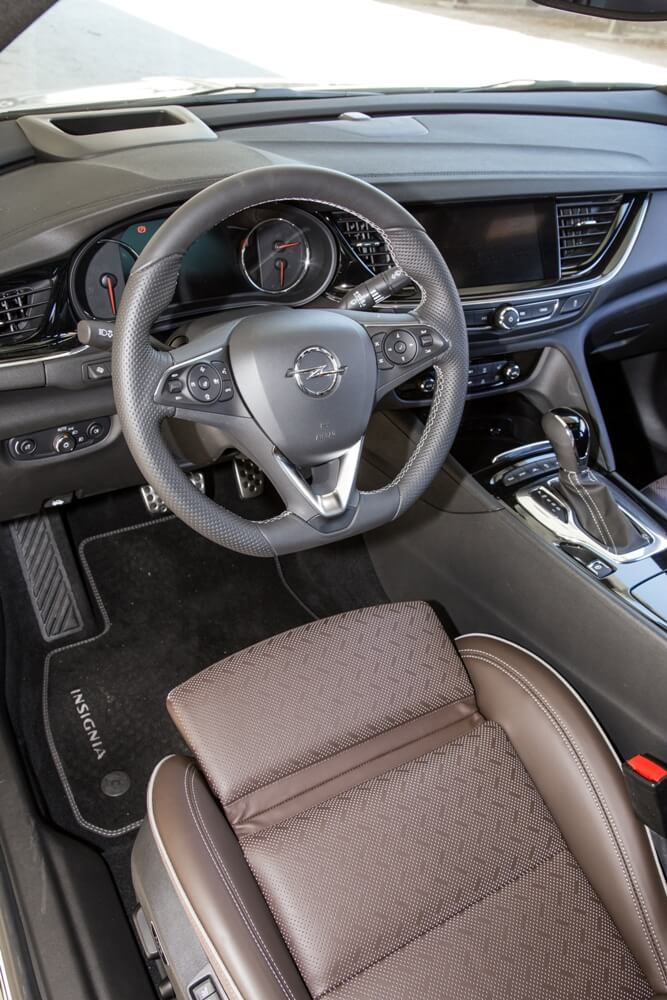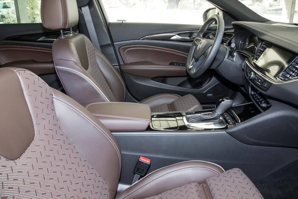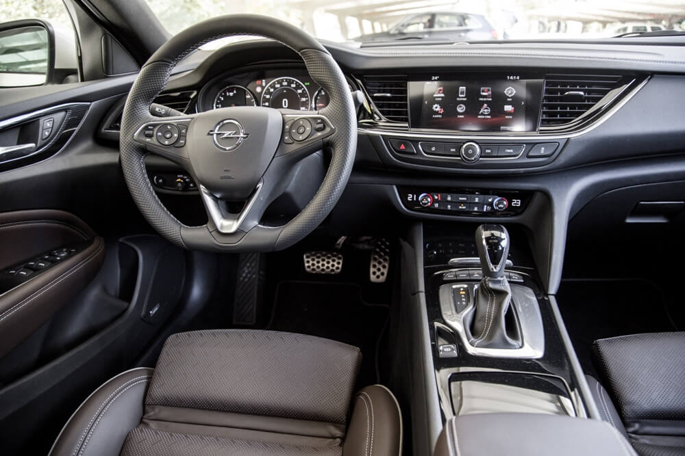 Mientras tanto, la imagen interior de la berlina de Opel se presenta con un salpicadero con formas esculpidas y enfocado al conductor, una reducción considerable del número de botones e interruptores (uno de los puntos débiles del habitáculo de la generación anterior) y los nuevos acabados que ofrecen una mayor calidad percibida gracias a las superficies gomosas y plásticos blandos que evitan posibles crujidos y vibraciones. Por otro lado, los asientos opcionales AGR hacen que pasar varias horas sentado sea más llevadero. Estos asientos ergonómicos han sido certificados con un sello de calidad de un comité independiente formado por expertos en diversas especialidades médicas. Están disponibles en varias tapicerías, pero el cuero Brandy opcional perforado de color marrón se complementa a la perfección en unos asientos cómodos que otorgan un gran agarre lateral y con ajustes en 18 vías, función masaje y climatización.