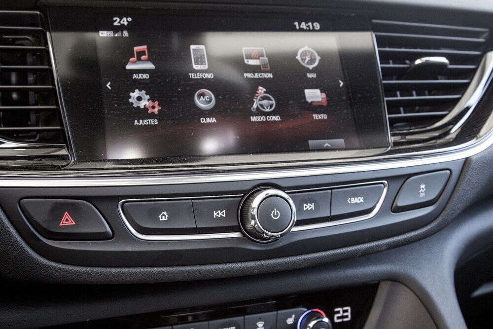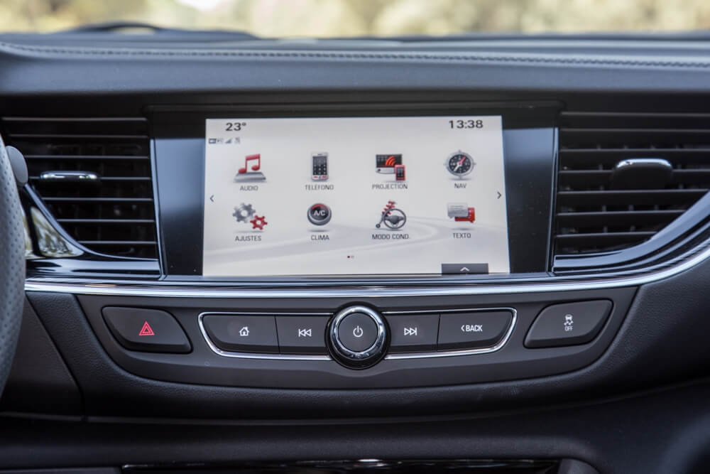 Otro de los puntos fuertes del nuevo Insignia es la carga tecnológica en materia de asistentes a la conducción, sistemas de seguridad y conectividad. Opel hace gala del sistema OnStar de asistencia, un asesor que actuará en caso de emergencia y proveerá de otros servicios al usuario, así como conectividad para smartphones y conexión Wi-Fi 4G LTE incluida para hasta 7 dispositivos, todo ello congregado en el sistema multimedia R 4.0 IntelliLink comandado por una pantalla táctil de ocho pulgadas que reacciona muy bien al uso y los cambios entre menús. Ofrece, además, un punto de carga inductiva para teléfonos y un sistema de sonido firmado por Bose. La cámara Opel Eye (situada en el parabrisas), las cámaras (delantera y trasera) para el asistente de aparcamiento, los sensores y el radar de proximidad en la calandra son todo lo que necesita el Insignia Grand Sport para ofrecer una completa batería de sistemas de seguridad.