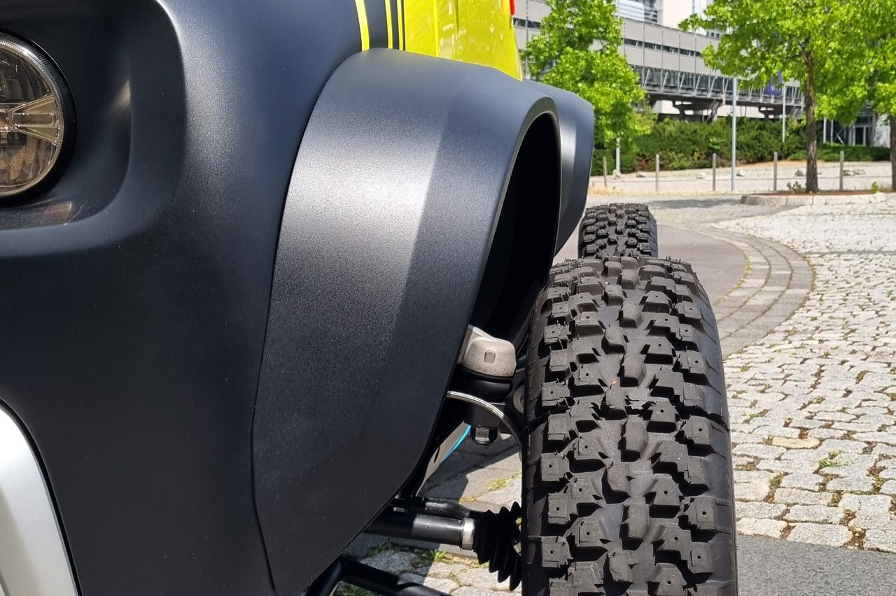 El cuadriciclo ligero alemán ha dejado de lado su imagen de coche simpático perfecto para usar en ciudad, que puede ser conducido a partir de 15 años sin carné, para conseguir una más salvaje. Solo hay que echar un vistazo a cómo se han ampliado la vías, que en cuyos extremos encontramos unas ruedas de tacos perfectas para una conducción off-road.