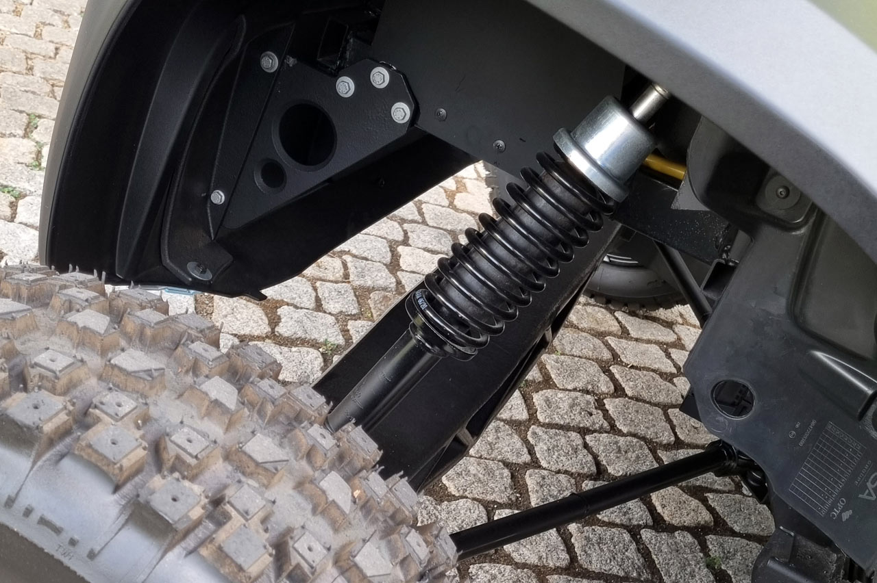 La suspensión filtra bien las irregularidades, y eso que en ocasiones voy sobre adoquines. La delantera es de doble triángulo y está a la vista. Con ella y con sus anchos de vía mayores, el coche es muchísimo más estable. Seguro que recuerdas lo que le pasó a un Ami en la famosa curva de Loews del circuito de Mónaco...
